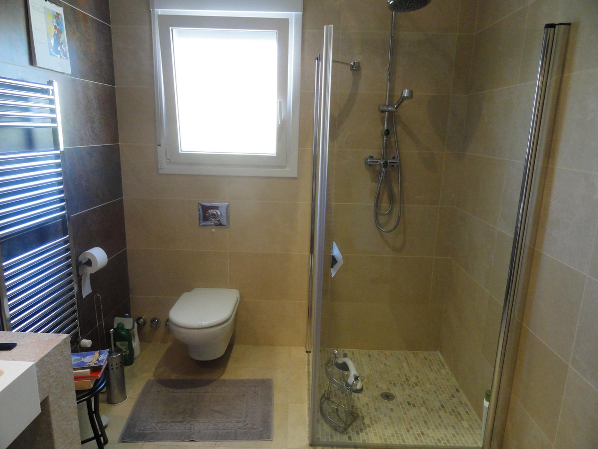 The villa consists of 2 floors. The ground floor has a spacious living / dining room with open fitted kitchen, bedroom with dressing room and bathroom en suite. From this floor you have access to the large covered terrace with outdoor kitchen with BBQ area, open terrace and swimming pool with outdoor shower. On the upper floor are 2 bedrooms with en suite bathrooms, dressing room and access to a terrace with mountain views. Furthermore, the villa has a beautifully landscaped garden, a garage and parking space. The location of the house is ideal for those who want to be close to everything (the historic center of Calpe, shops, restaurants, supermarkets and the beaches of Calpe).