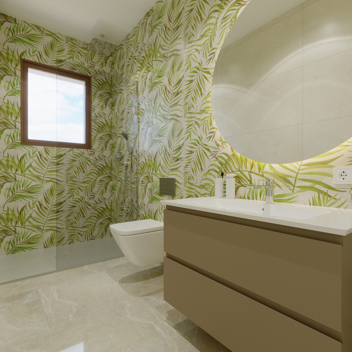 In the residential we have designed a set of 12 independent villas of modern Mediterranean style, with private plot of different surfaces, 3-bedroom houses with 3 bathrooms and open kitchen to the living room.