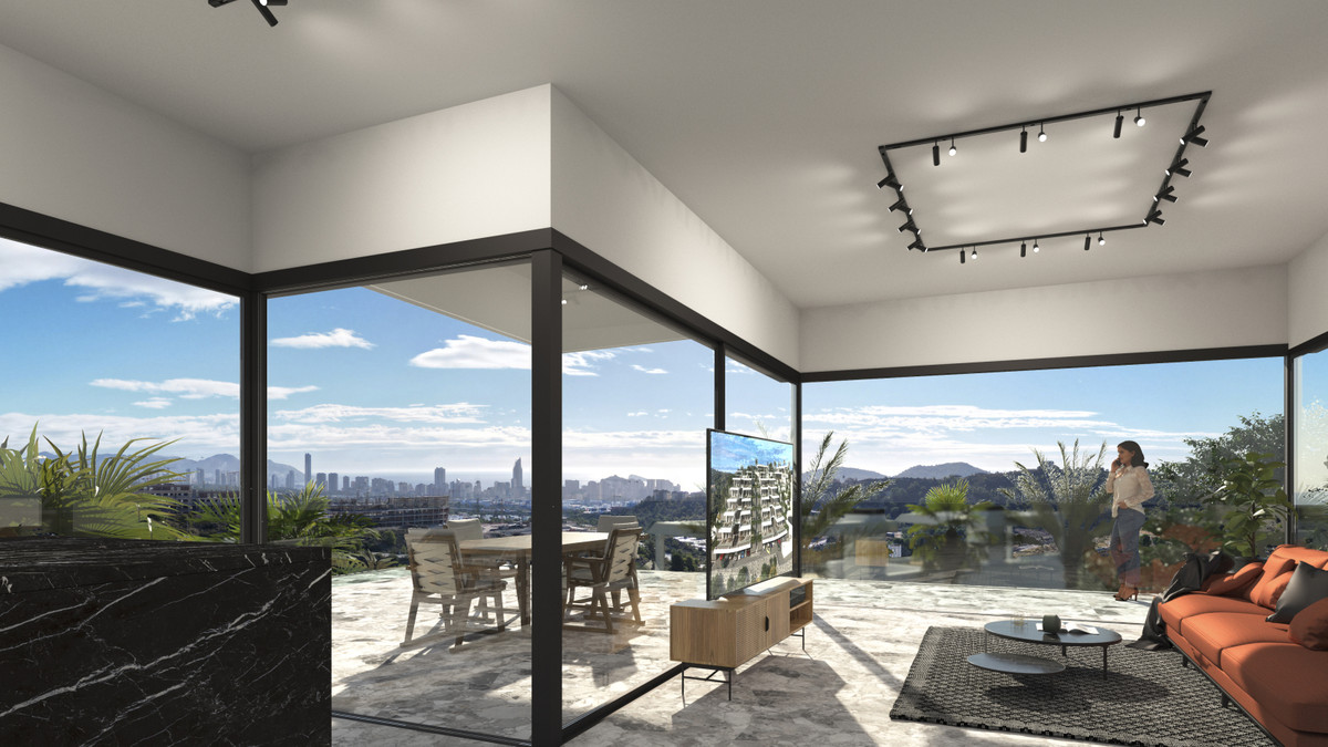This development has been designed to blend into the natural environment and adapt to the topography of the land, allowing you to enjoy great views of the Mediterranean Sea and the skyline of Benidorm.