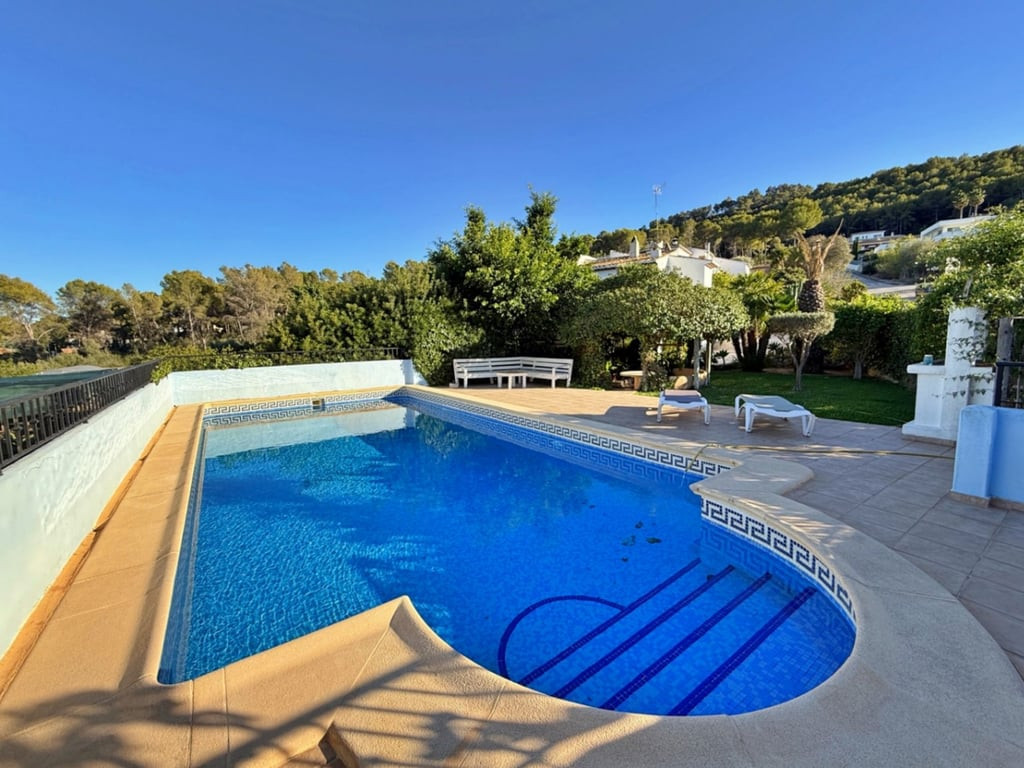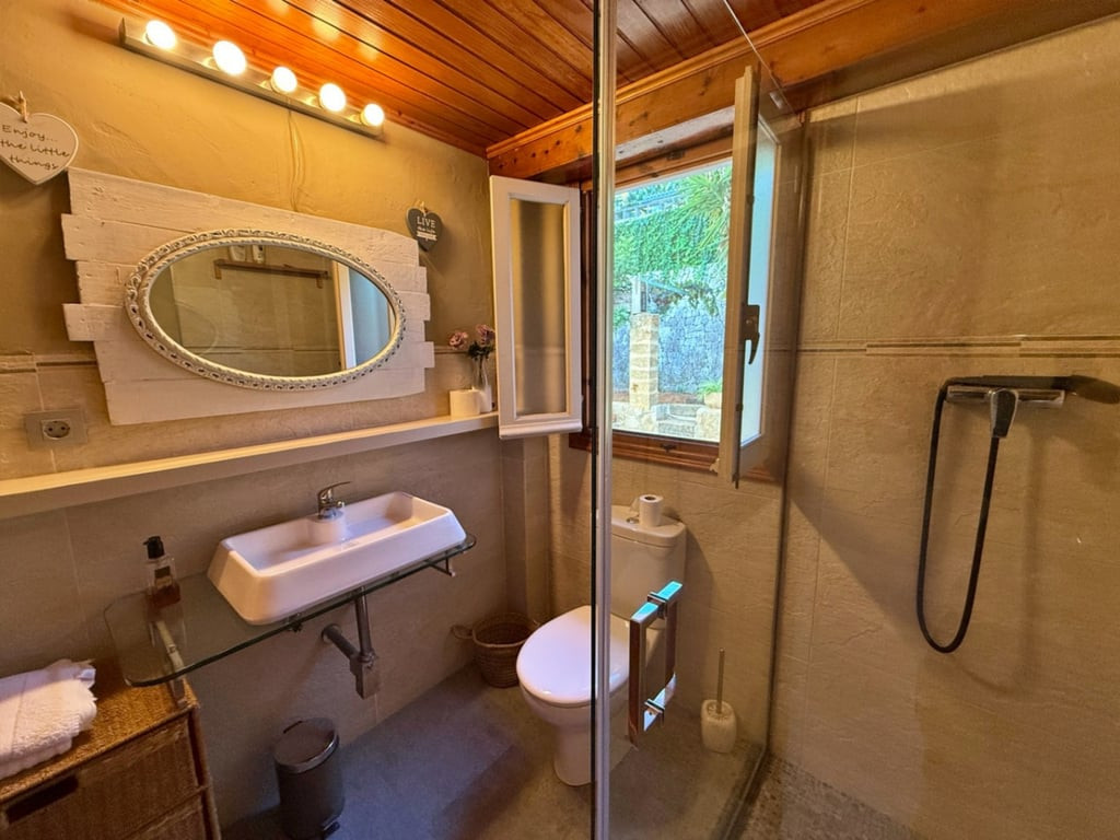 The main villa features 5 beautifully appointed bedrooms and is complemented by 2 completely self-contained apartments, providing flexibility for guests or potential rental income. The authentic Spanish design showcases charming details throughout, including cozy fireplaces and inviting terraces that enhance the home's warmth and character.