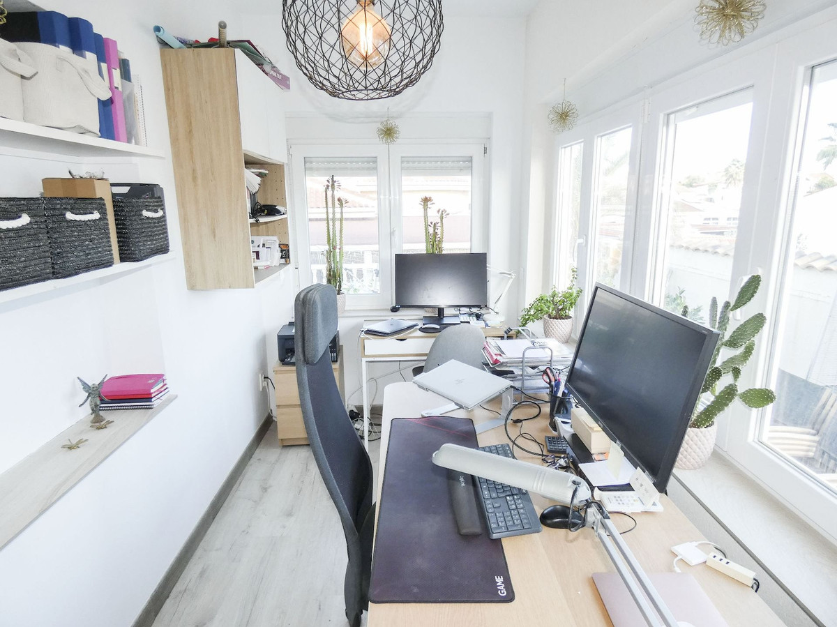 Integrated air conditioning and two separate AC units in one of the bedrooms (currently an office) and in the apartment on the upper floor. There is parking for two cars on the property with an automatic gate. Automated irrigation for pots and trees.