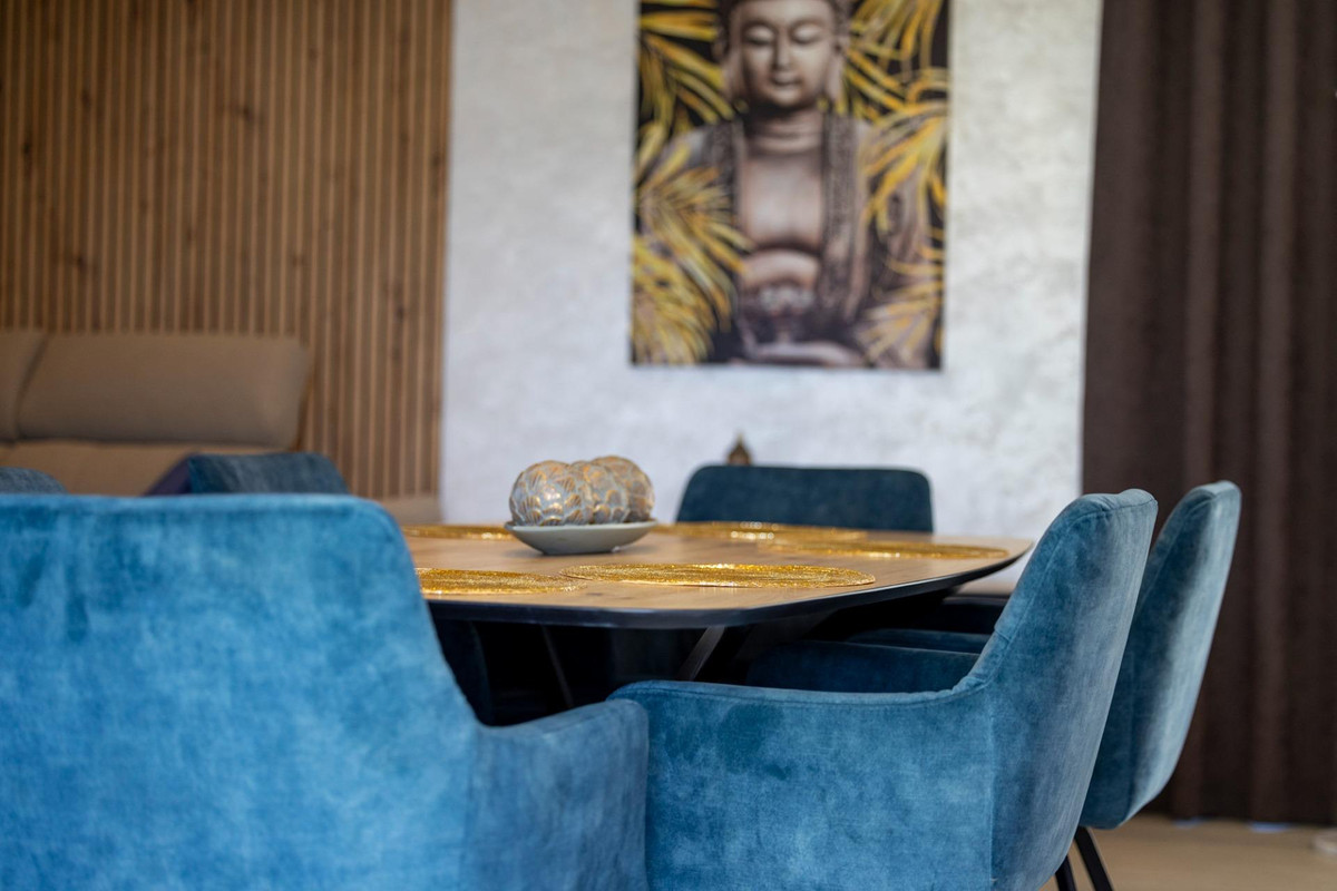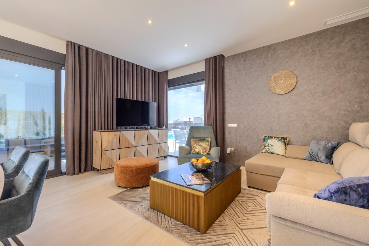 Luxury villa in prestigious Sierra Cortina de Finestrat with sea views!We offer for sale an exclusive new house with stunning sea views, completely renovated in January 2024. With a built area of 350 m², the property is located in a prestigious newly developed area, close to the Sierra Cortina Resort and Villaitana Golf Club.The house has 4 bedrooms, including a multipurpose room situated in the basement, each with its own private bathroom. It is fully furnished and move-in ready, featuring high-quality finishes such as Venetian stucco and natural materials. The furniture, lighting fixtures, and appliances (by Miele) were carefully selected to provide maximum comfort and style since the property was built for personal use.Additional features include:- Underfloor heating – Solar energy installation of 6.5 kW – Electric awnings on terraces – Windows with protective polarized coating – Expanded heated pool of 32 m² with protective cover – High-quality outdoor furniture – Automatic irrigation system – Private parking space – Eufy surveillance system n – Mosquito nets on sliding doorsnThis is a unique opportunity for those looking for a fully equipped home ready to move into. The house is perfect both as permanent residence or investment.