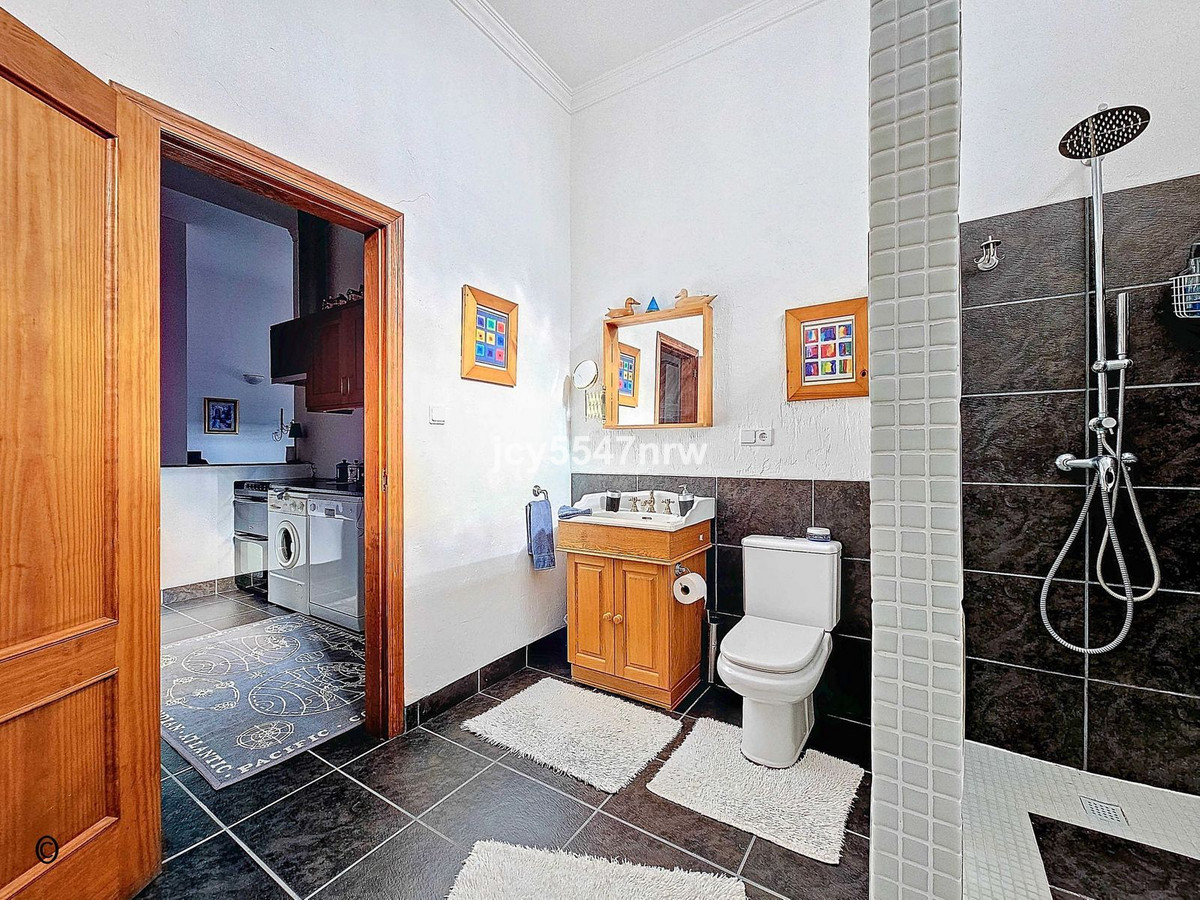An internal staircase leads to the upper floor. Here, you'll find a built-in linen closet and a very spacious bedroom with an ensuite bathroom. The bathroom is accessible via a hallway/walk-in closet, which offers plenty of storage space and is equipped with both a bathtub and a shower. This floor also has a large terrace, where the view is just as stunning.