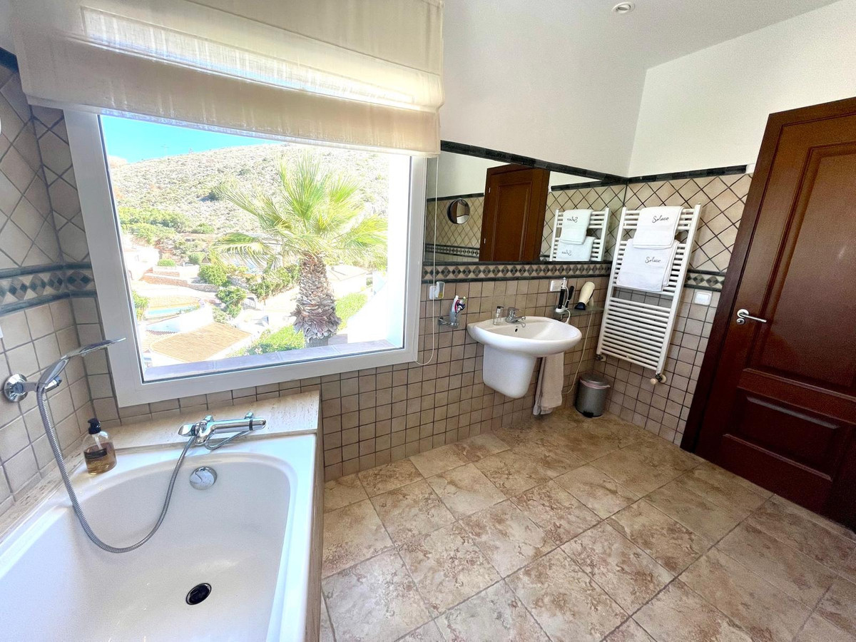 Villa Solace “The Bond Villa” This delightful Ibizan-styled villa is owned by two world-acclaimed film and theatre producers, which gives a clue as to where the name of this villa came from. Perches on the hillside above the neighbouring villas look over the Valley of El Portet; this villa could be a setting out of a James Bond film, with dramatic panoramic open views of the Benrnia Mountains and the turquoise blue sea.