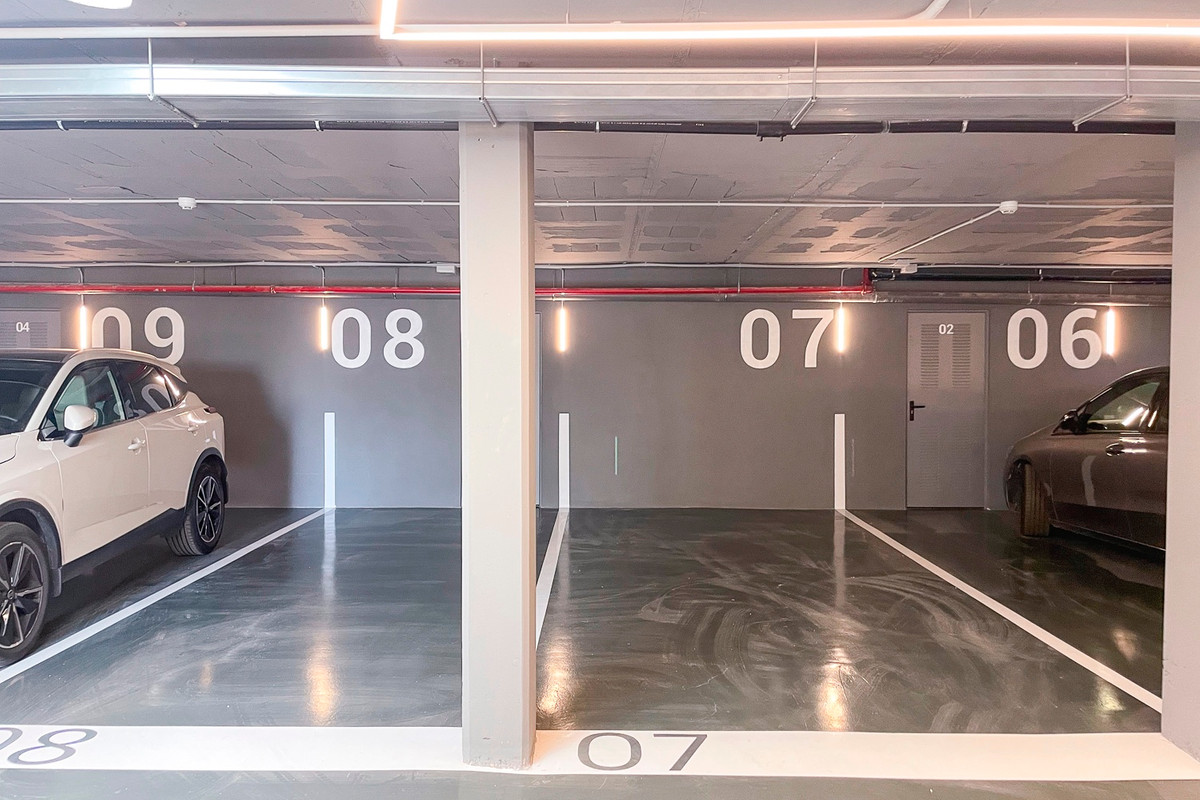For convenience, the apartment comes with a private double garage and a storage room. Security is ensured with an alarm system and controlled access to the community.