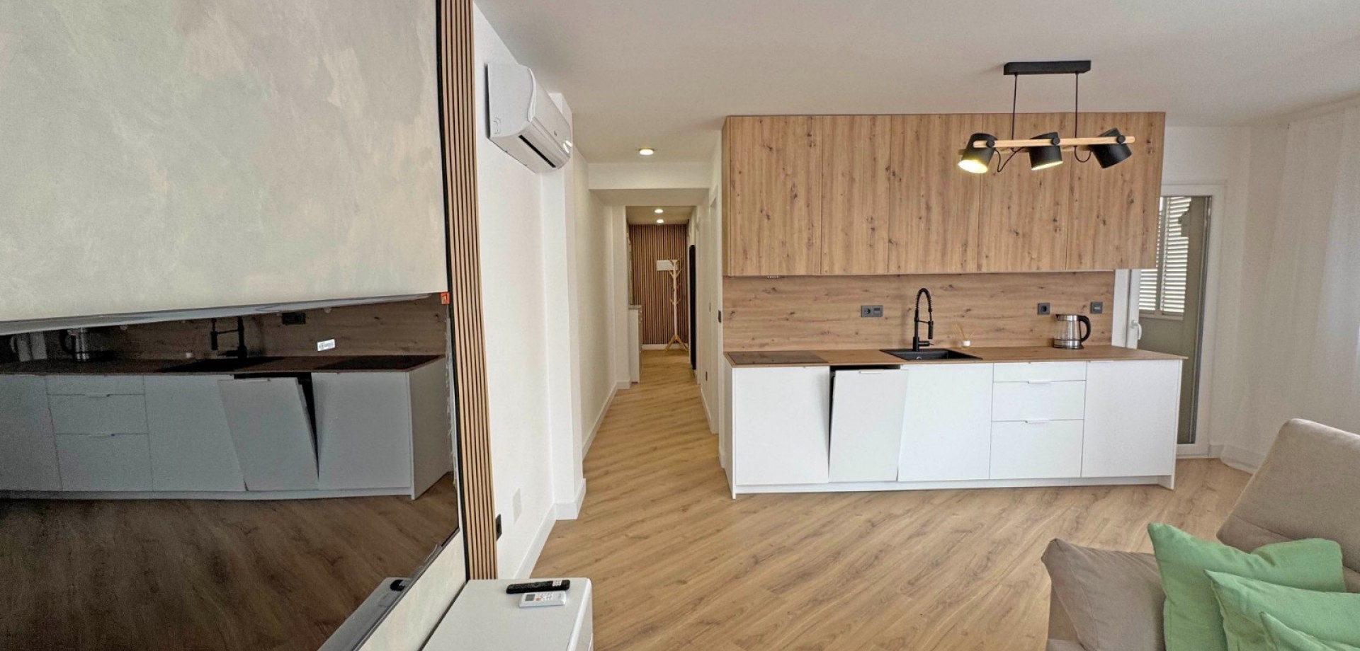 Situated on the fourth floor of a well-maintained building with elevator access, this east-facing home offers an abundance of natural light, a generous layout, and excellent community amenities. With 77 m² built, the apartment features two double bedrooms with built-in wardrobes, a full bathroom, a bright and spacious living-dining area, and a fully equipped kitchen with modern finishes. Additional comforts include air conditioning, high ceilings, and quality materials throughout. Built in 2002, the property is in excellent condition and adapted for people with reduced mobility.