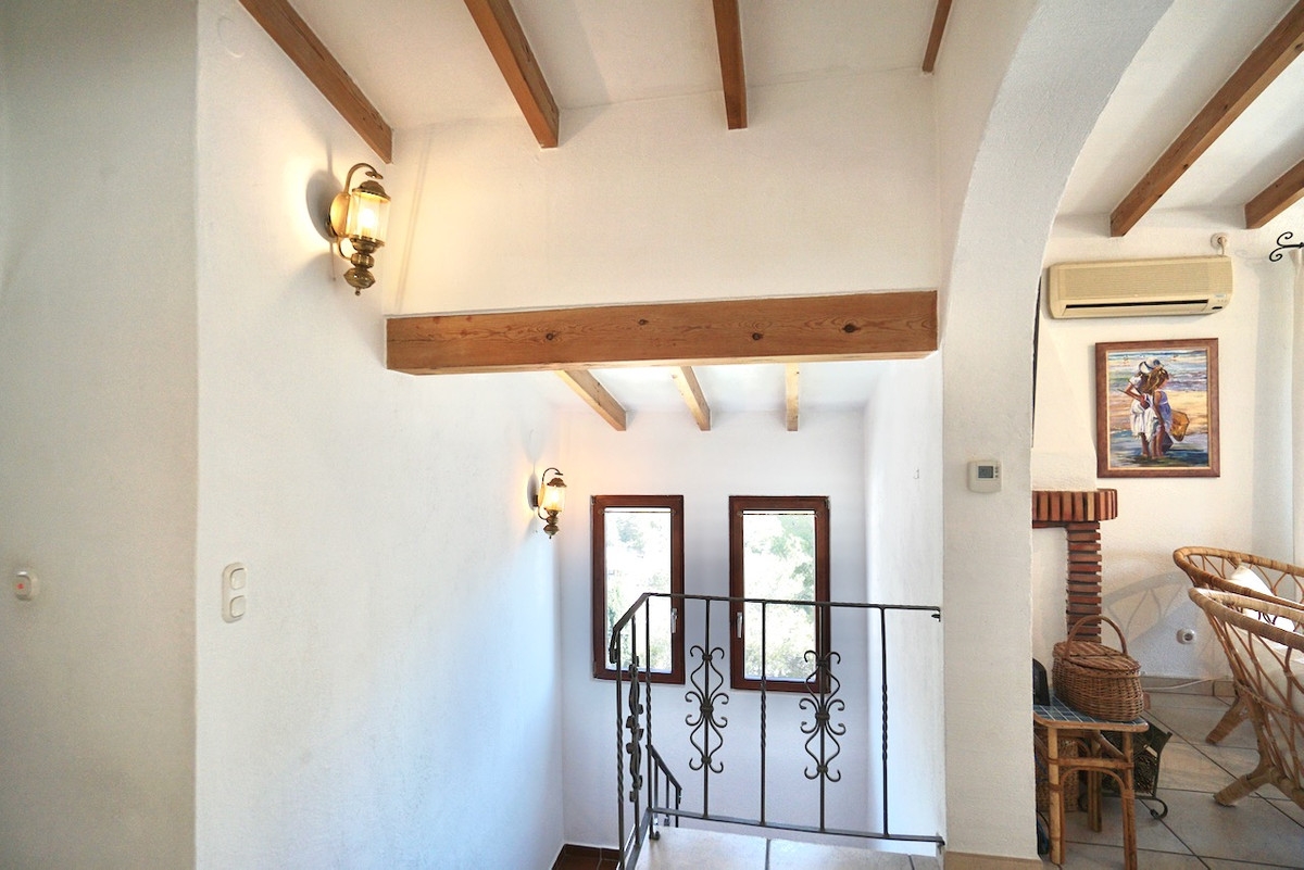 Elevated south-facing plot with beautiful valley and sea viewsPrivate 8 × 4m Roman-style pool and spacious sun terraceFour bedrooms, including master with dressing room/studyCharacter features like wooden beams and a fireplaceAir conditioning, central heating, insulation, and double glazing4kw solar panels for improved energy efficiencyOff-road parking and built-in BBQ areaQuiet location just minutes from amenities, hiking trails, and Moraira's beaches