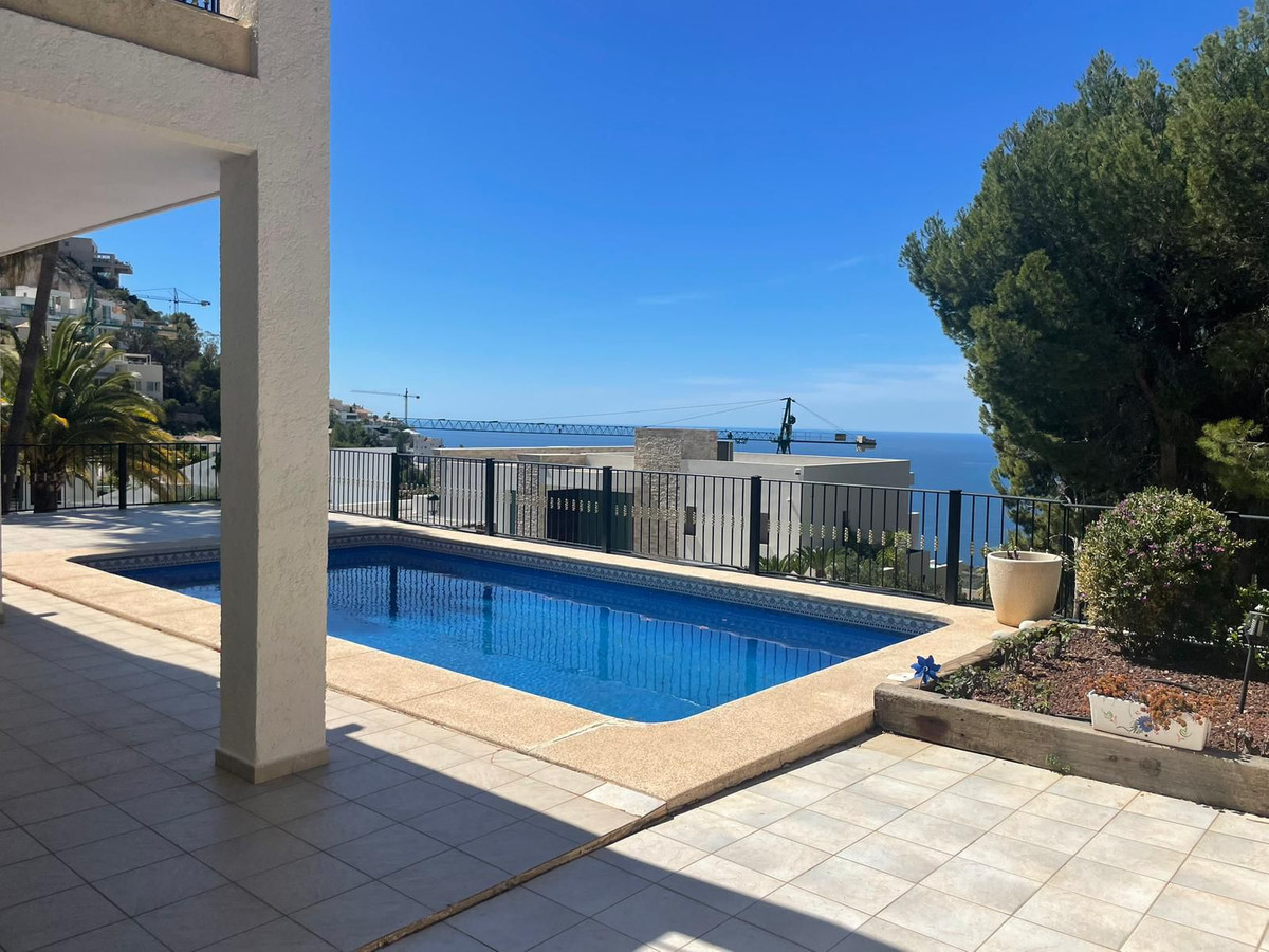 On the first level, you'll find the living-dining room, a fully equipped kitchen, and a guest bathroom. Both the living area and the kitchen have direct access to the pool and offer stunning sea views.