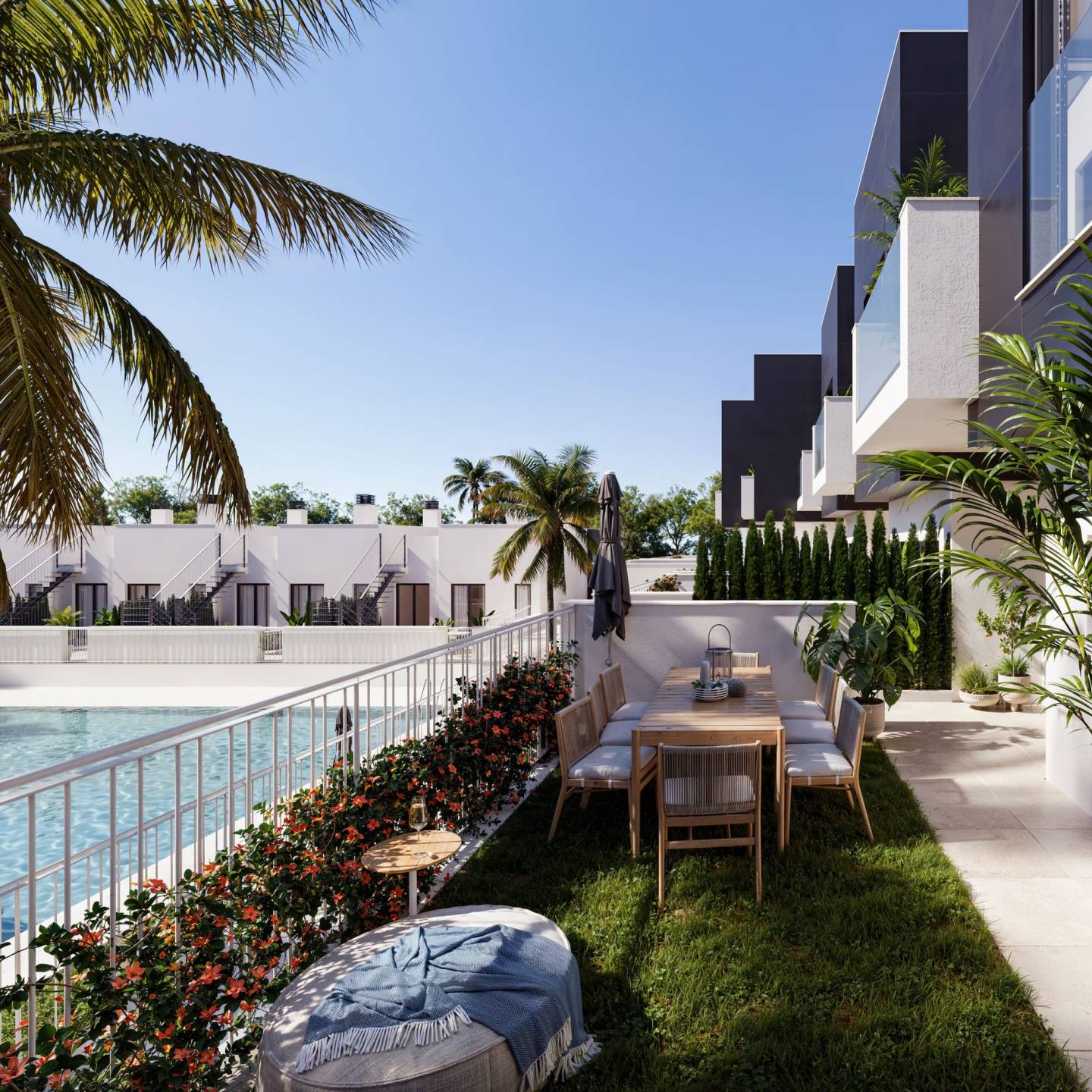 There will be a beautiful community pool at the centre of the development where there are also toilets for communal use. The development is gated and there is a video intercom connected to all the properties.