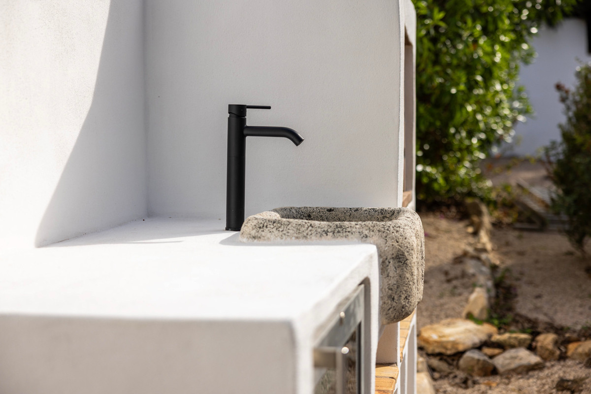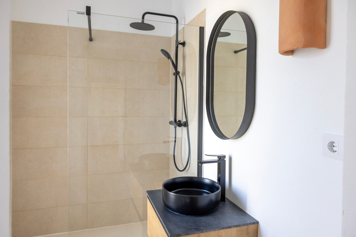 This beautiful, renovated villa is located in the quiet Tosalet urbanisation just one km from the beautiful Jávea coastline. The villa has been recently renovated and refurbished with value placed on retaining traditional Spanish features. The renovation included new flooring, new bathrooms and a new kitchen. Besides the garden and exterior areas have also been given a new touch including a new 4×8 swimming pool installed with a new outdoor shower, an outdoor kitchen with barbecue and a lounge. There is also an outdoor bathroom and parking space for two cars. Via the outside stairs you reach the covered terrace from where you enter the upper floor. Here you enter a cosy living-dining room with a fireplace and an open kitchen with a wooden bar. Adjacent is a dining room with the possibility of converting it into an extra bedroom. On this floor there are also two bedrooms, both with an en suite bathroom, one with access to a spacious terrace. One more floor up is an additional room with an adjoining terrace and stunning views of the valley and Montgó. The ground floor consists of a room with a private entrance that can be used as an office, workshop or bedroom and a guest house consisting of a bedroom with an en suite bathroom. The villa is equipped with air conditioning hot-cold and heating via radiators so you can stay here in comfort all year round! On foot, you can reach several beautiful beaches including Cala Blanca, Cala Sardinera and the sandy beach of Jávea. A beautiful villa in one of the most desired areas of Jávea!