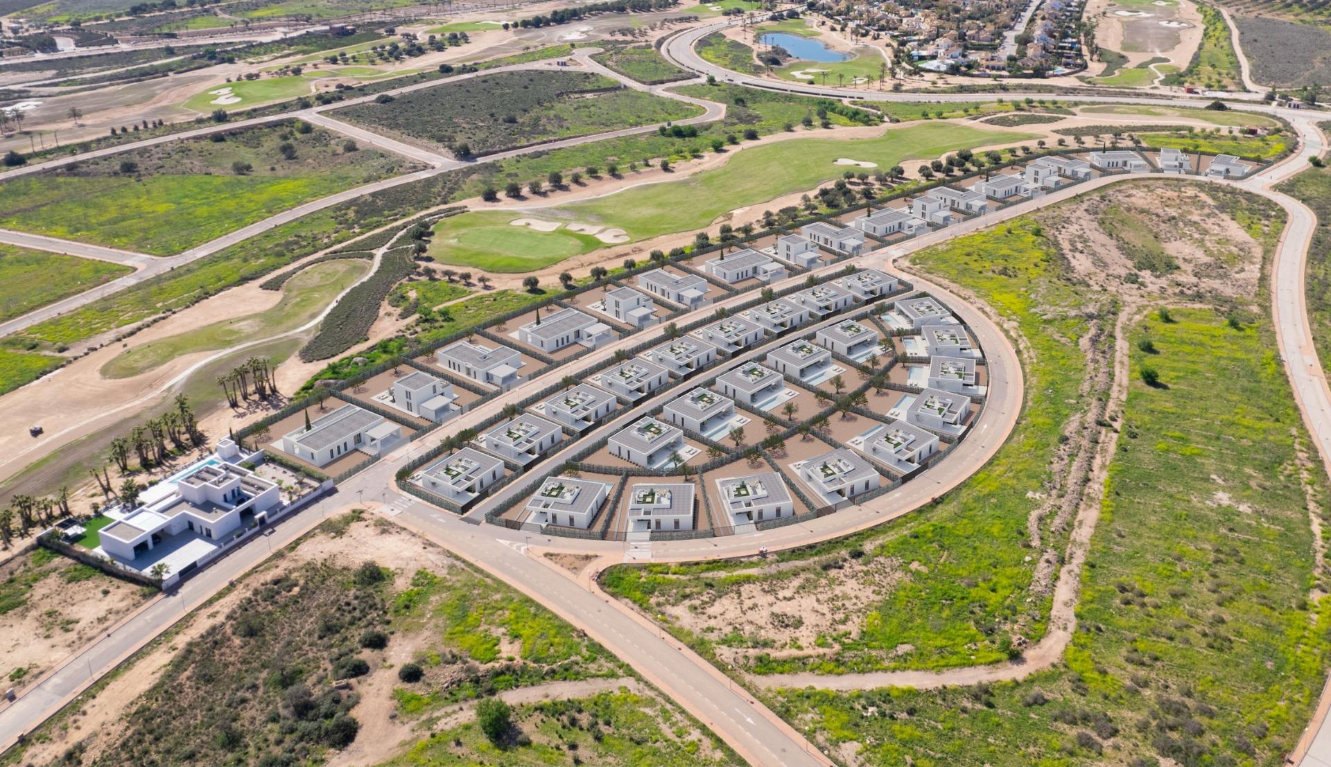 Exclusive villas with private pools at Hacienda del Álamo Golf Resort, Costa CálidaModern villas with private pools in one of Spain’s finest golf resortsDiscover a unique opportunity to purchase a newly built villa at an exceptional price in the Hacienda del Álamo Golf Resort, located between the historic cities of Cartagena and Murcia, in the heart of the Costa Cálida. These contemporary villas are designed to offer comfort, privacy and elegance, and are located in an exceptional setting dedicated to golf and leisure.Each property offers a spacious layout with 3 bedrooms and 2 bathrooms on one floor. Private rooftop solarium. With plots starting from 396 square metres and a built area of 111 square metres, these homes offer ample space for indoor and outdoor living.High quality features and finishesThese villas are equipped with all modern amenities to ensure maximum comfort and style, including:Garden with drip irrigation systemFully equipped kitchen with fitted wardrobes and appliances includedPre-installation for ducted air conditioningBathrooms with furniture, mirrors and shower screensAluminium windows with thermal break and double glazingAccess to a large communal swimming pool with natural grass and children’s play areaPrivate 3×6 metre swimming pool with showerLuxury living at Hacienda del Álamo Golf ResortHacienda del Álamo is renowned as one of Spain’s finest golf resorts, offering residents a relaxed, sporty and comfortable lifestyle.18-hole golf course and academySports facilities including tennis, paddle tennis, gym and fitness classesMain clubhouse with panoramic views, a Mediterranean restaurant and sunny terraces4-star hotel and spa for relaxation and well-beingSpaces for the whole family, with children’s play areas, swimming pools and bike lanes.Traditional Spanish village with shops, cafés and new restaurants opening soon.Strategic location with excellent connectionsCorvera Airport (Murcia): 18 km (approx. 15 minutes)Cartagena: 36 kmMurcia city centre: 40 kmMar Menor beaches: 28 kmShopping centres (Dos Mares, Espacio Mediterráneo): less than 30 kmYour dream home next to the golf course awaits youWhether you are looking for a permanent residence, a holiday retreat or a smart investment on the Costa Cálida, these golf course villas in Hacienda del Álamo are the perfect choice. Contact us today for more information or to arrange a personalised viewing.