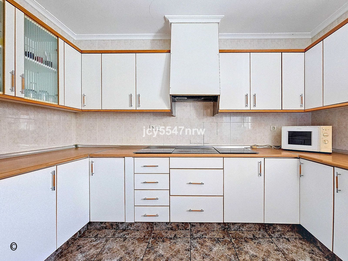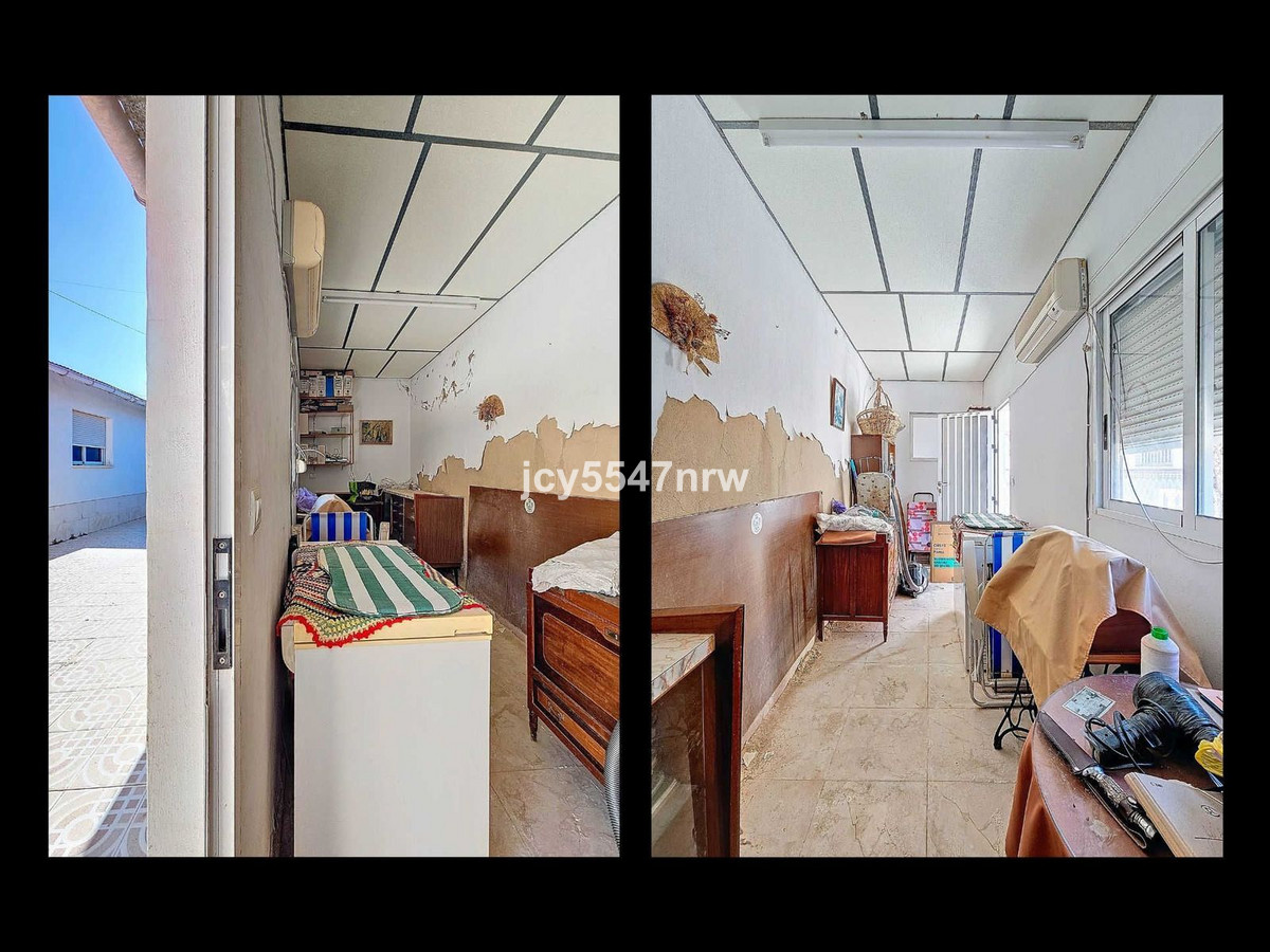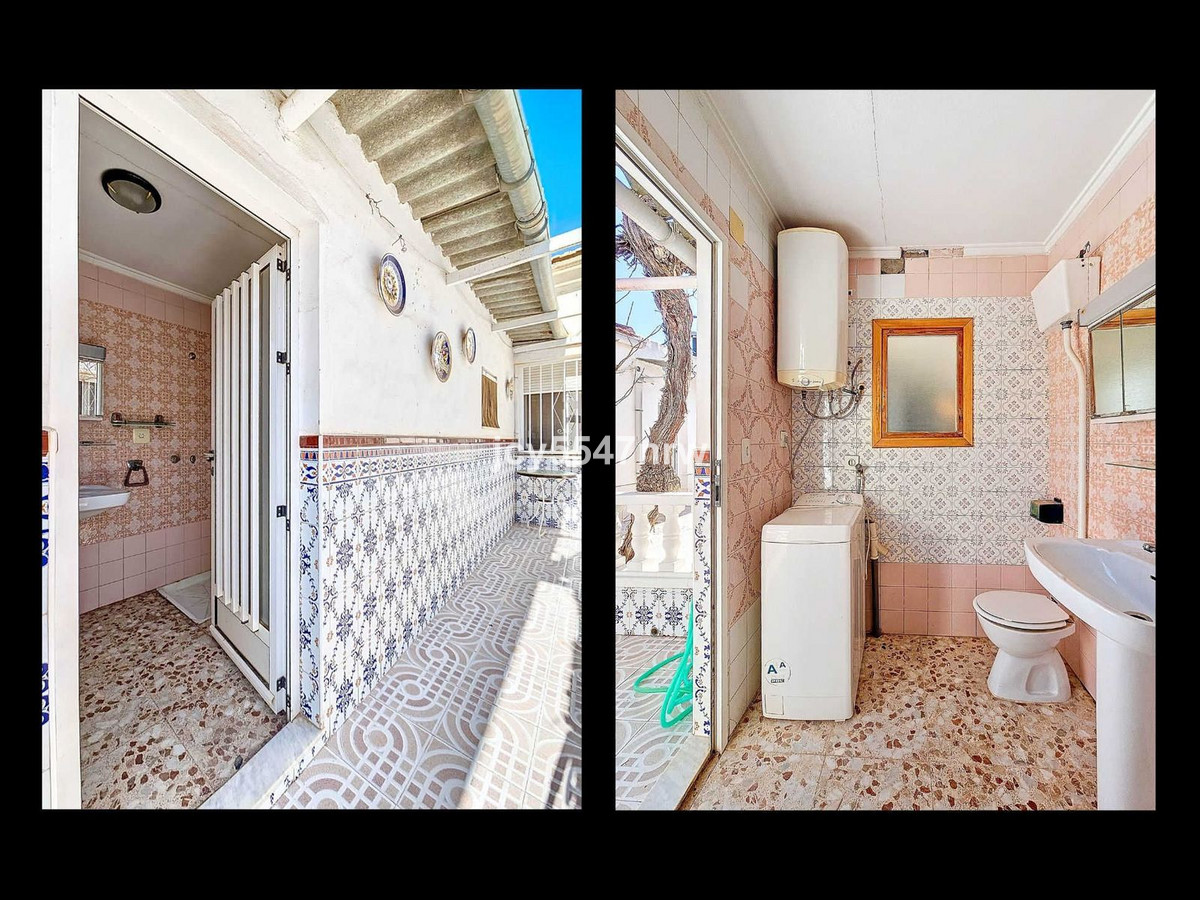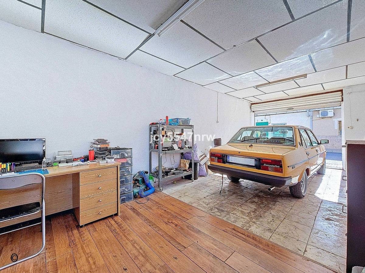 The patio is a wonderful place to enjoy both the sun and shade, experiencing the Spanish lifestyle. There is plenty of space to create a barbecue area or consider adding a jacuzzi. From the patio, a second bathroom is accessible, as well as a storage room. Additionally, the patio provides access to the spacious garage. There is plenty of parking available on the street, so this space could also be used as a home office or guest accommodation. The patio has a separate access door from the rear street.