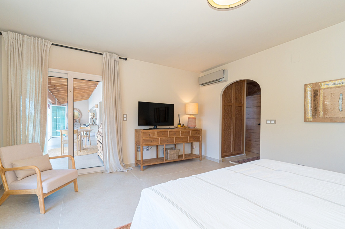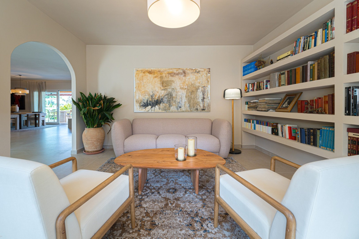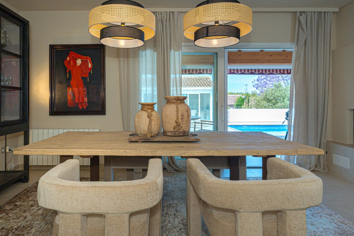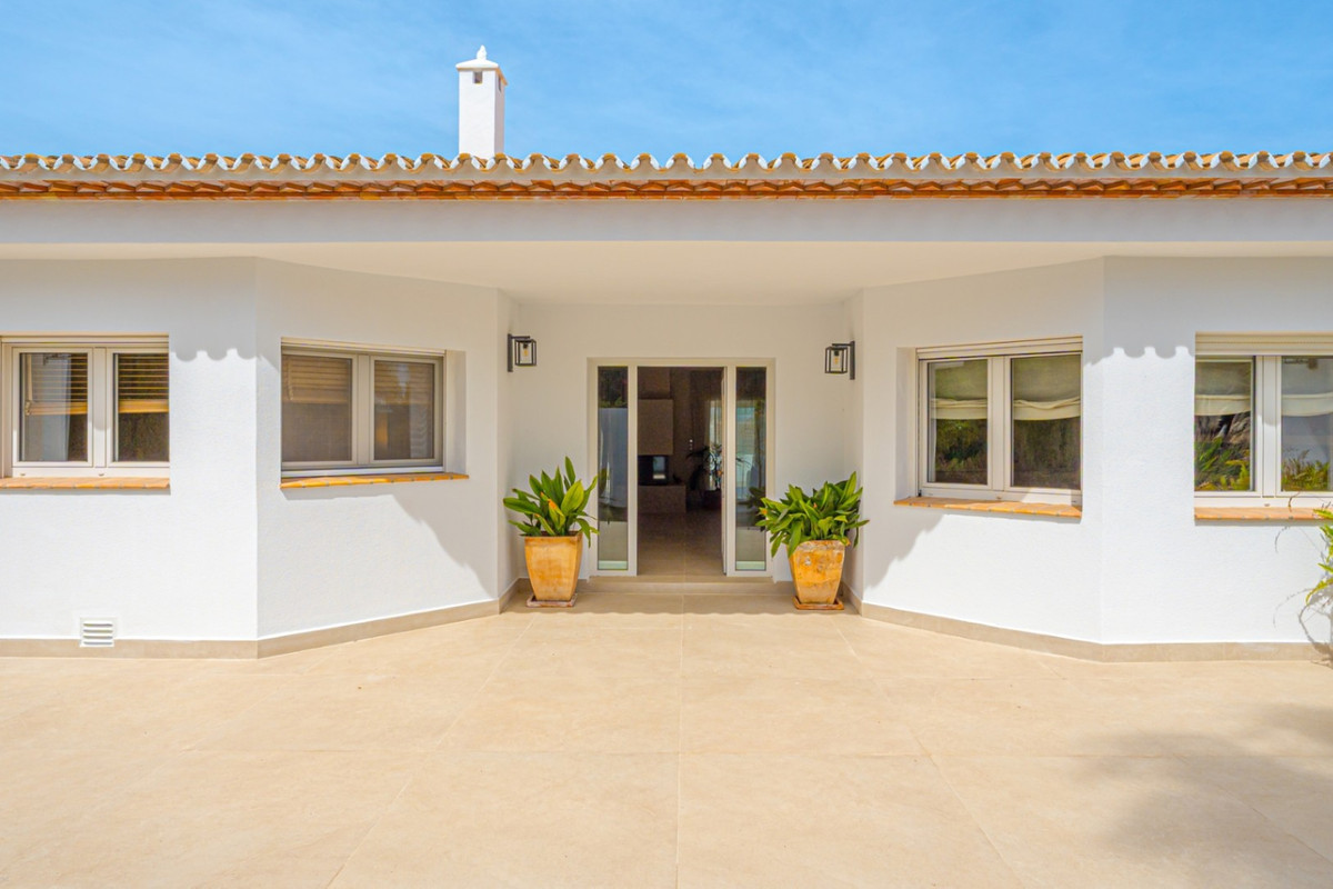 Key PointsLarge spaces: 4 bedrooms, 2 bathrooms, and a guest toilet (359 m²) on a plot of 1,888 m². One of the bedrooms converted into a living room and library.Single level and large plot: the entire house on the same level located on a large plot.Views of the MontgóCompletely renovated in 2025 with luxury finishes and modern American kitchen.Sunny all year round.Spacious private pool and Mediterranean garden, south-facing, very sunny.Large living-dining room with fireplace and panoramic windows.Outdoor summer kitchen and outdoor shower to enjoy the climate.Large capacity closed garages and additional storage rooms for storage. More than enough space to keep your cars and personal belongings.Climate control and comfort: central heating, double glazing, quiet and peaceful area.Prime location at the foot of the Montgó in Denia, near Las Rotas beach and main roads.