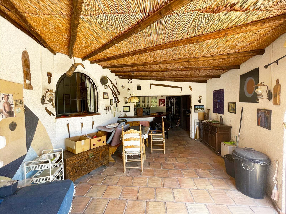The outdoor areas are ideal for enjoying the Mediterranean climate. There is a 9×5 metre private pool, several terraces, a bar area, mature gardens, parking for five vehicles and a closed garage for two cars.