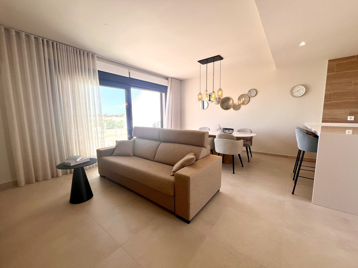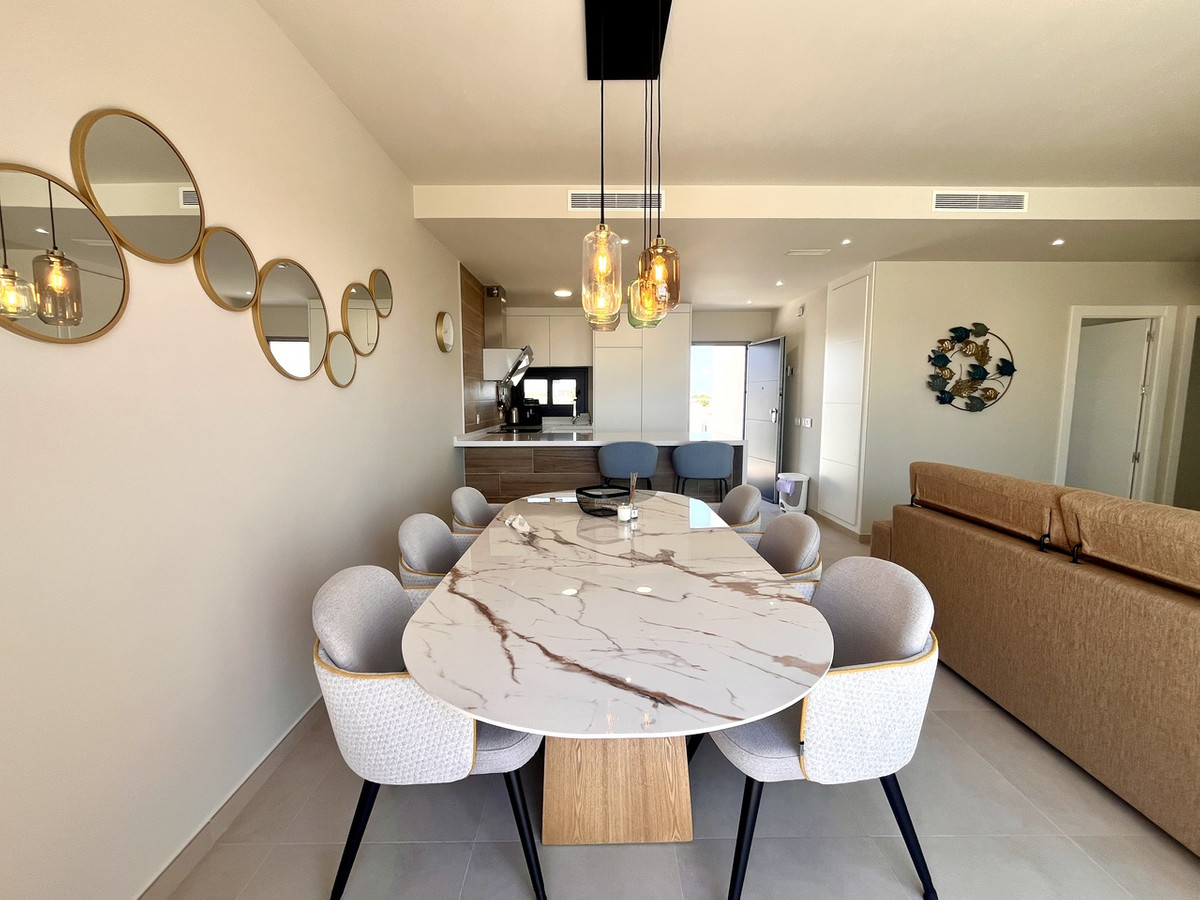 This beautifully presented 3-bedroom, 2-bathroom penthouse apartment offers a rare combination of comfort, style, and unbeatable views. Enjoy stunning pool views from your spacious main terrace, and soak up panoramic vistas of both the Mar Menor and Mediterranean Sea from your private rooftop solarium.