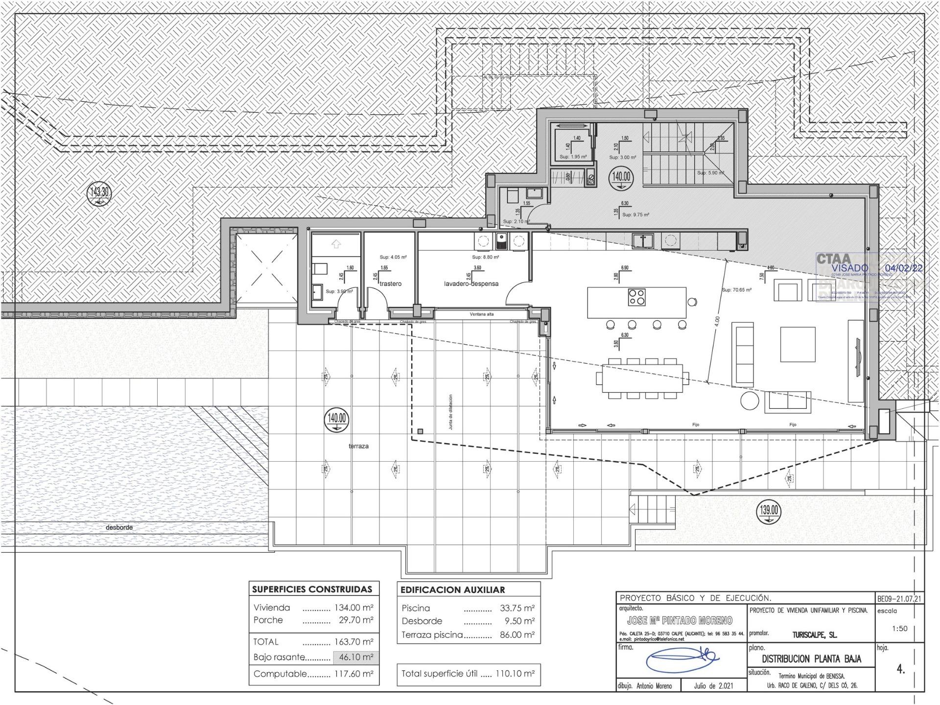 Luxury New Build Villa with Panoramic Sea Views in Raco de Galeno, Benissa CostaExclusive Location on the Costa BlancaSituated in the prestigious Raco de Galeno urbanization in Benissa Costa, this luxury villa offers a perfect combination of modern design and Mediterranean charm. The property is just 2 km from the nearest beaches and only 5 km from the AP-7 motorway, providing fast access to Moraira, Calpe, and other renowned Costa Blanca destinations. Alicante International Airport is approximately 80 km away, while prestigious golf courses such as Club de Golf Ifach and Altea Golf are within 10 to 15 km.Modern Architecture and Spacious InteriorsDesigned to maximize natural light and spectacular sea views, the villa features contemporary architecture with large floor-to-ceiling windows and seamless indoor-outdoor integration. Spread across multiple levels and connected by a private lift, the home offers four spacious bedrooms, each with an en-suite bathroom, plus an additional guest toilet. The master suite boasts direct access to a private terrace with sweeping views of the Mediterranean.Exceptional Living and Entertaining SpacesThe open-plan living and dining area is complemented by a fully equipped designer kitchen with top-of-the-line appliances, ideal for both everyday living and hosting gatherings. Expansive terraces surround the property, creating multiple outdoor relaxation and entertainment areas.Luxury Outdoor LifestyleThe highlight of this villa is its infinity pool, offering panoramic views of the coastline. A generous poolside terrace provides the perfect space for sunbathing, alfresco dining, or enjoying unforgettable sunsets with family and friends.Premium Features and ComfortThis new-build villa includes advanced smart home technology, underfloor heating, and ducted air conditioning, ensuring year-round comfort. The property also offers an underground level with ample space for additional uses.Ideal as a Permanent or Holiday HomeWith construction fully licensed and expected completion within 18 months of reservation, this villa represents a unique opportunity to own a contemporary masterpiece in one of the most sought-after locations on the Costa Blanca. Its proximity to sandy beaches, charming coastal towns, marinas, shopping areas, and outdoor activities enhances its appeal for both permanent living and as a high-end holiday retreat.Secure your dream villa in Raco de Galeno, Benissa Costa, and embrace the ultimate Mediterranean lifestyle with breathtaking sea views and unmatched comfort.
