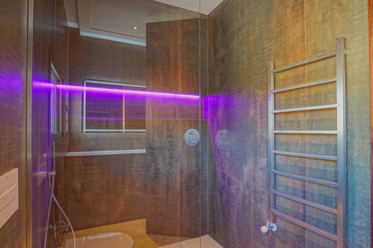 It is equipped with high-quality materials and technology, including underfloor heating, ducted air conditioning with room control, aluminum windows with thermal insulation, low-emission glass, photovoltaic installation, motorized blinds, fitted wardrobes, LED lighting, and a pre-installed alarm system.