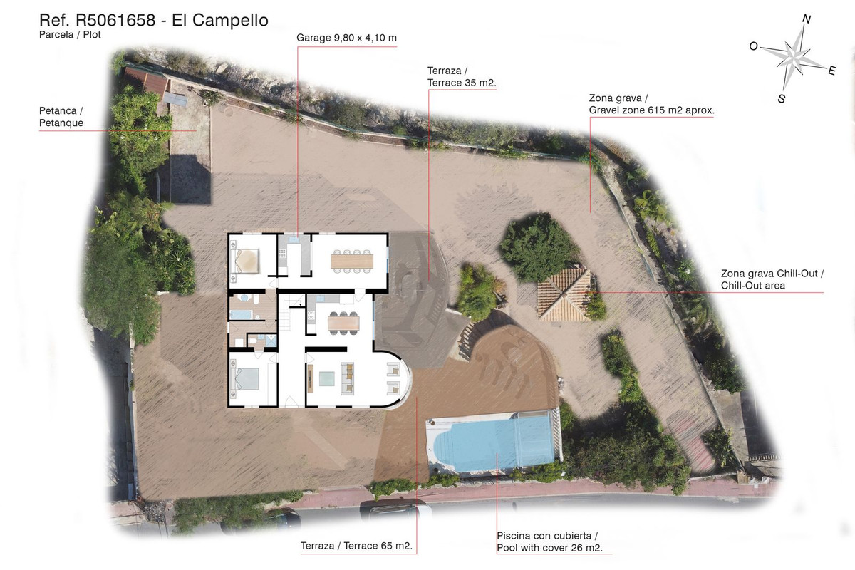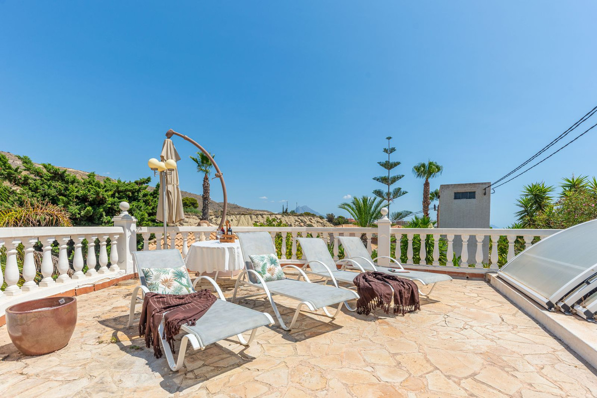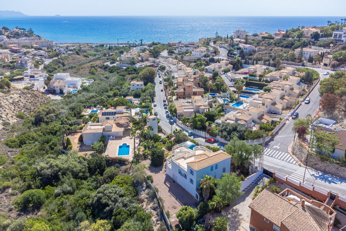 In the northern part of El Campello, this impressive Mediterranean villa stands on a private plot with views of the sea and coastline, just 800 m from a beautiful sandy cove. With a total built area of 230 m² and set on a generous plot more than four times its footprint, the property offers spectacular vistas—most memorably from its expansive 80 m² top terrace.