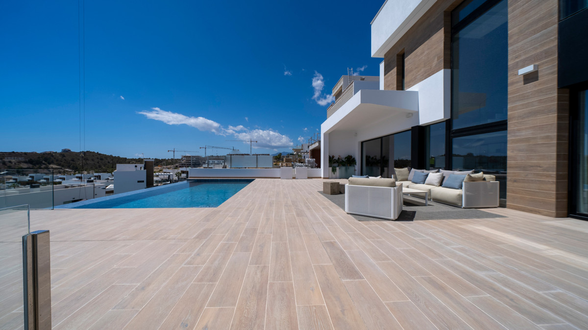 Direct access from the first floor to the contemporary infinity pool and large terrace, an idyllic place to spend your vacations, relax and enjoy the sunsets and sea views of Benidorm.