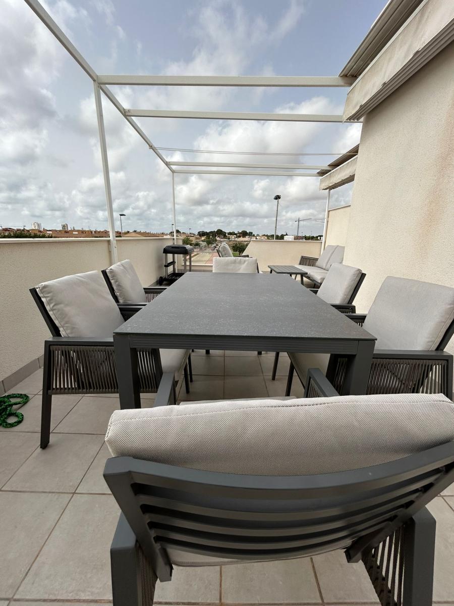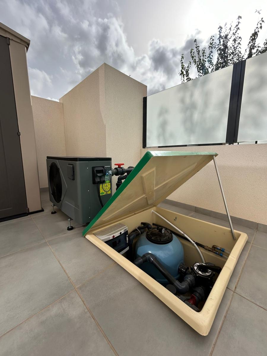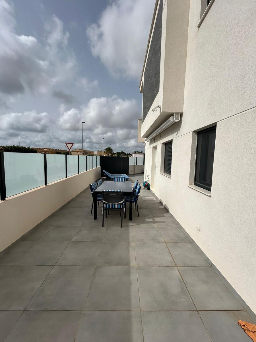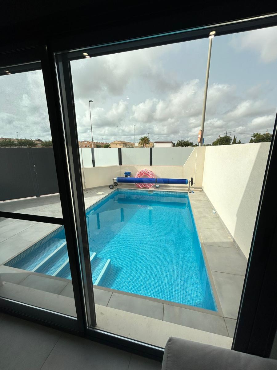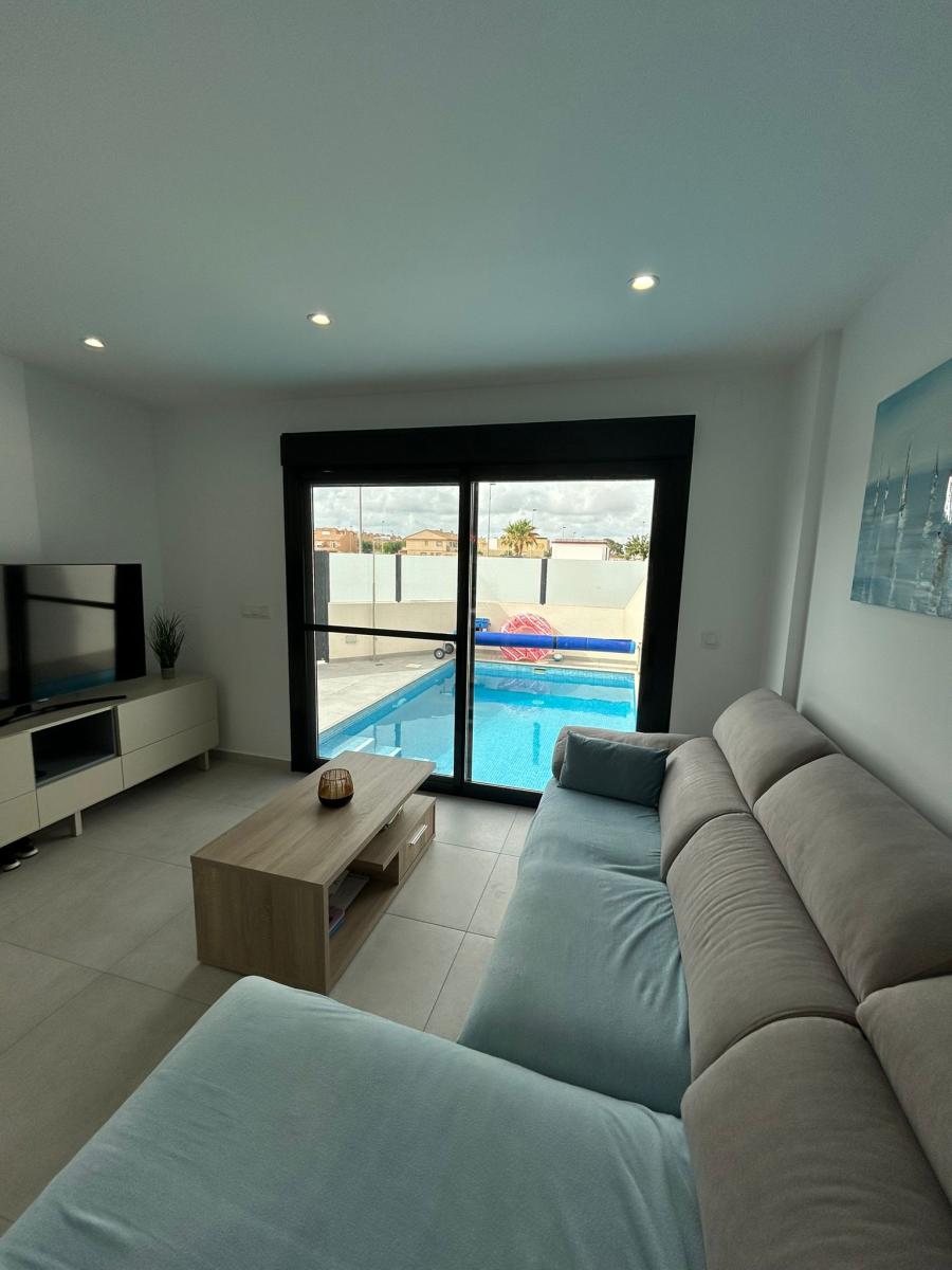 3 bedroom, 2 bathroom semi-detached south/east facing villa with private pool and private solarium in Santiago de la Ribera.Large plot with gated driveway leading to a large front terrace. The large swimming pool is to the front of the property and there is plenty of space for dining, sunbathing. The house has a large living room with views to the pool and an modern open plan fully fitted kitchen. Beyond the kitchen is a double bedroom with fitted wardrobes and a door leading to the side terrace. There is also a modern shower room on the ground floorOn the first floor are two double bedroom with fitted wardrobes. The bedroom to the front of the house has access to a terrace. Also on this first floor is a modern shower room. There are stairs from the first floor leading you to your own private roof solarium with outdoor kitchen area. Another amazing outdoor living space.This house is only two years old and will be sold fully furnished.It’s within walking distance to the beach and a short drive to the Dos Mares shopping mall and Pinatar retail park. Murcia airport is about a 30 min drive and Alicante is about a 1 hour drive. There is also some bars, cafes near to the property too. Santiago de la Ribera is a beautiful city on the banks of the Mar Menor. It is the coastal area of the city of San Javier and started as a simple fishing village. It has now become a popular holiday destination, attracting not only Spaniards but also tourists from all over Europe.Santiago has a modern feel, although it still retains its ‘fishing village’ atmosphere. It has a very beautiful promenade with majestic palm trees and 2 kilometers of beautiful sandy beaches. From here you can take a boat trip across the calm waters of the Mar Menor, to the La Manga Strip on the other side. The main shopping area is really in the town of San Javier, but there are some shops in the narrow streets to browse, try it on a Wednesday morning when there is a large street market.