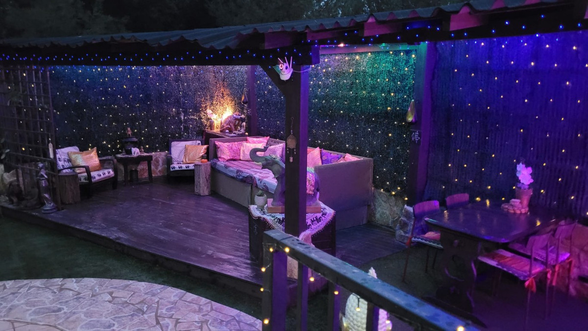 The home combines comfort and style across two floors. On the ground level, a bright living room with three large patio doors opens onto a private terrace and an 8 × 4 metre pool. A fully equipped independent kitchen and a guest toilet complete this level, along with a spacious guest bedroom featuring an en-suite bathroom and direct access to a terrace with a fish pond and waterfall.