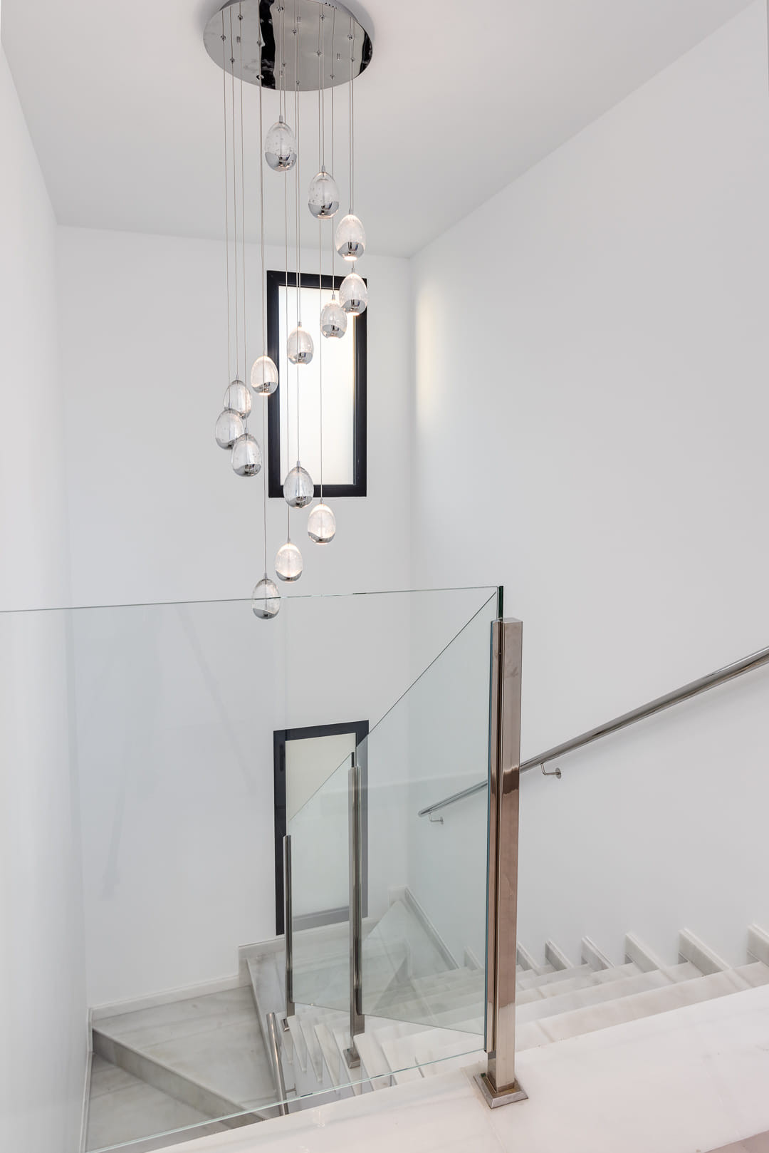 These villas are designed with energy efficiency in mind, achieving a category B rating. They include a high-grade electricity installation with independent circuits, an AERO-TERMIA system for hot water, and an air chamber that protects against humidity.