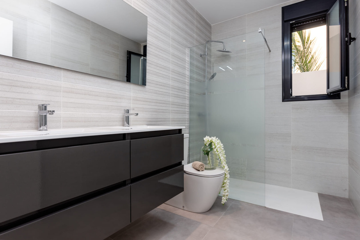 Enjoy your own private plot, complete with gardens, terraces, and the option for a swimming pool. The interiors boast first-quality large-format porcelain flooring throughout, including the bathrooms, and feature elegant white lacquered doors with stainless steel hardware. The kitchens come fully assembled with top-of-the-line furniture, a hood, an oven, and a ceramic hob, finished with a premium Silestone countertop.
