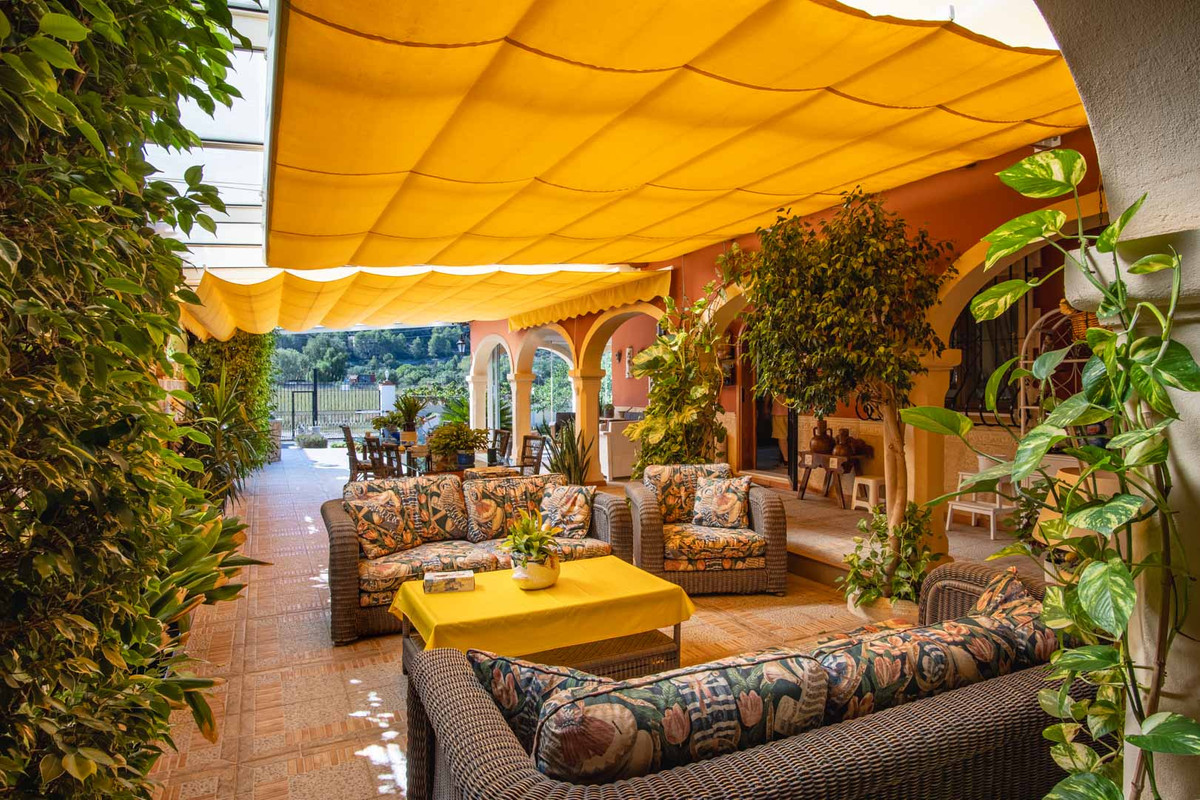 The exterior of the house is one of its greatest attractions. It has several terraces (covered, glazed, and open) from which you can enjoy stunning views of the Montgó. The private pool is surrounded by a manicured garden with handcrafted fountains that provide a very special ambiance. For those who love outdoor gatherings, the property features a fully equipped, separate, heated summer kitchen and barbecue. There are also various auxiliary spaces that can be used as a storage room, a carport with a pit for vehicle maintenance, another carport with capacity for two cars, a covered garage, and a wine cellar.