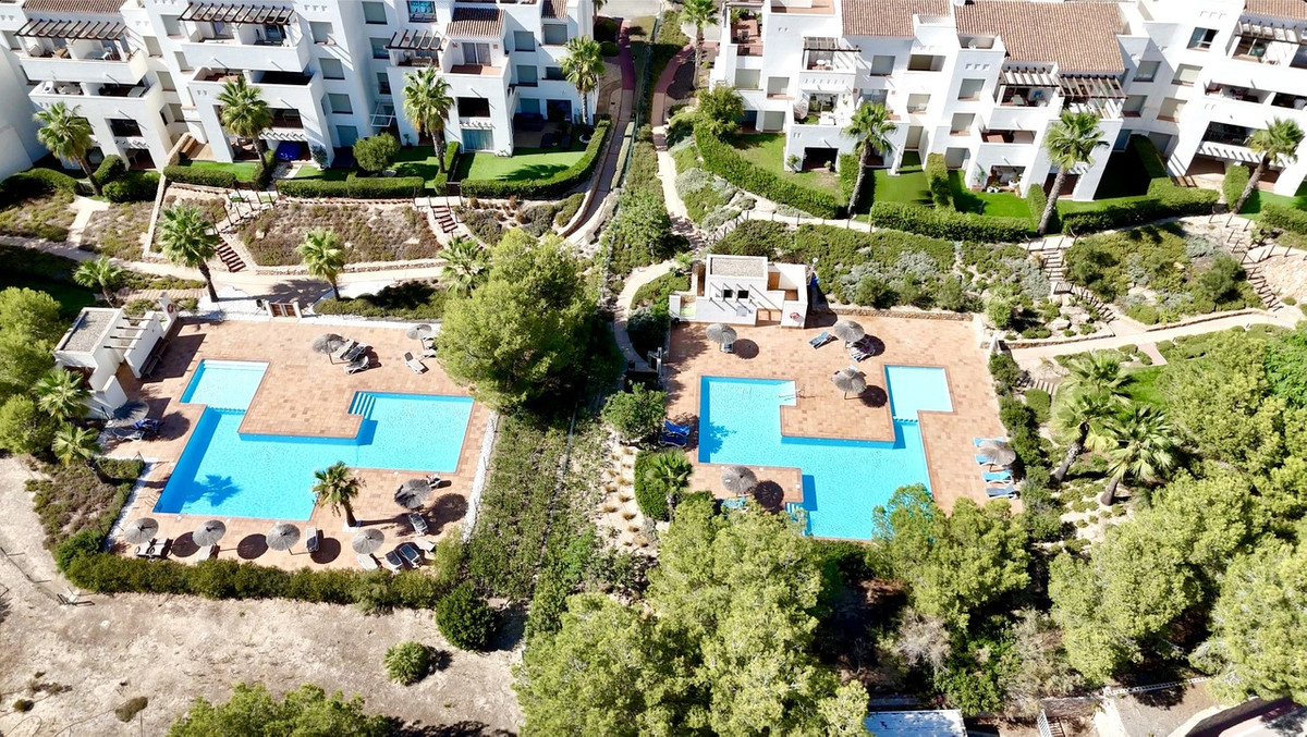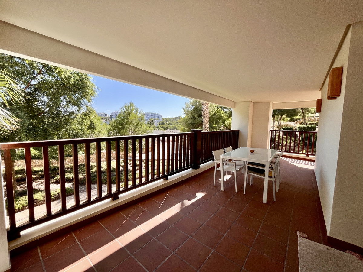 This spacious and modern apartment offers 3 bedrooms and 2 bathrooms all on one level, making it one of the largest homes in the popular La Encina community at Las Colinas Golf & Country Club, an award-winning resort internationally recognized for its luxury lifestyle and natural surroundings. Finished to a high standard with marble floors and quality materials throughout, the property is sold fully furnished and ready to move into straight away. It benefits from a private entrance, a parking space directly at the door, and a large storage room, combining convenience with style. Residents can enjoy two beautiful community swimming pools, one of which is set within the pine forest providing complete peace and privacy, while just a short walk leads to the golf course, sports facilities, spa, restaurants, and scenic nature trails. A brand-new energy-efficient air conditioning system has recently been installed, and the layout allows for an open-plan kitchen design to maximize natural light and modern living. This is a rare opportunity to purchase one of the most spacious and exclusive apartments in Las Colinas, offering comfort, elegance, and an unbeatable location on the Costa Blanca.