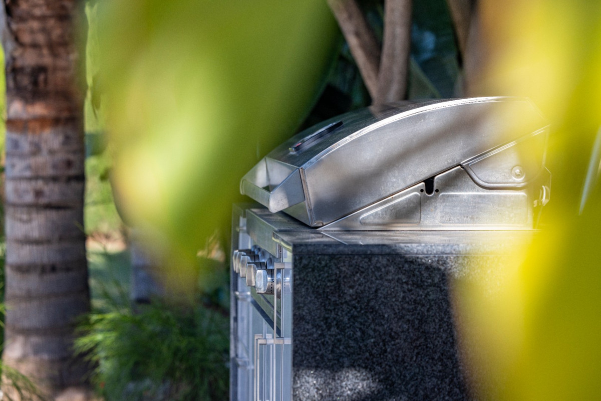 The garden includes a private entertaining area with barbecue, surrounded by landscaped grounds that ensure privacy.