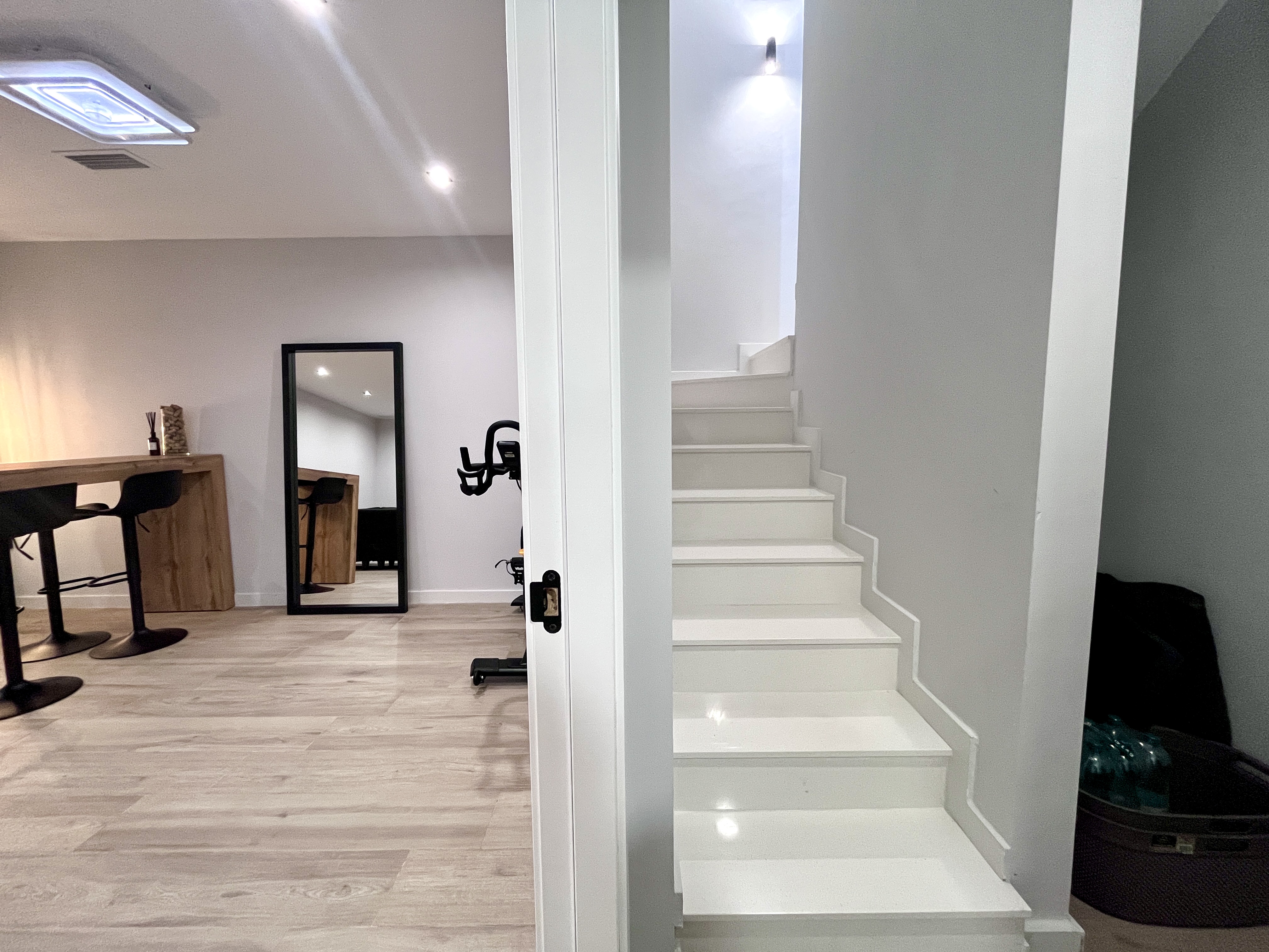 This high-spec, fully furnished residence spans multiple levels and has been designed with contemporary elegance and functionality in mind. The property features four bedrooms, with one conveniently located on the ground floor and three on the first floor, along with a fully finished basement offering an additional bedroom and bathroom—ideal for guests or extended family. Air conditioning is installed throughout with a ducted system to ensure year-round comfort, while the upgraded electrical panel and state-of-the-art security system provide safety and peace of mind.