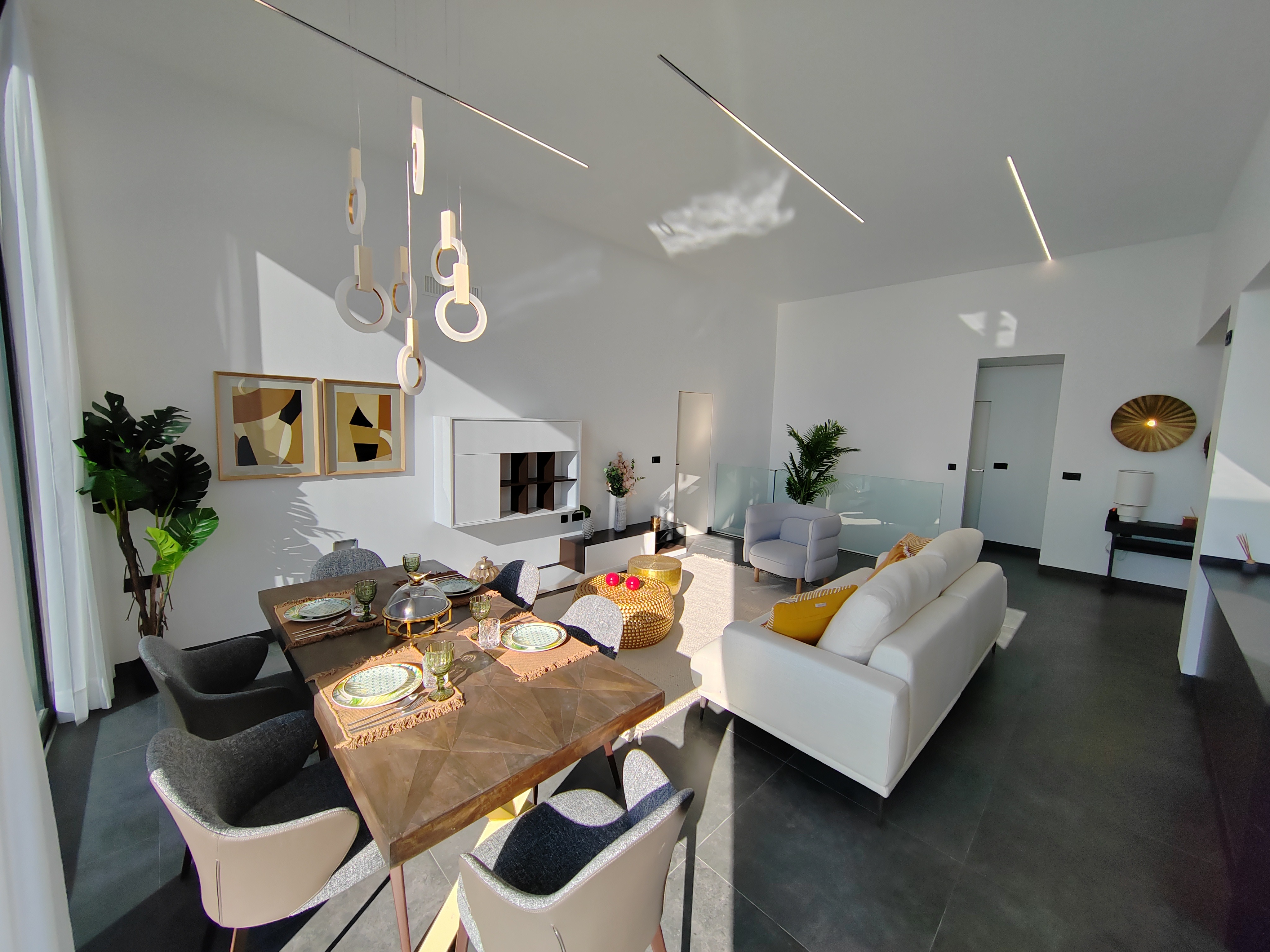 This exceptional new-build villa in Los Balcones combines style, comfort, and privacy, offering 128 m² of living space on a 475 m² private plot with a beautifully landscaped garden, large sun terraces, and a private pool, perfect for enjoying the Mediterranean lifestyle.