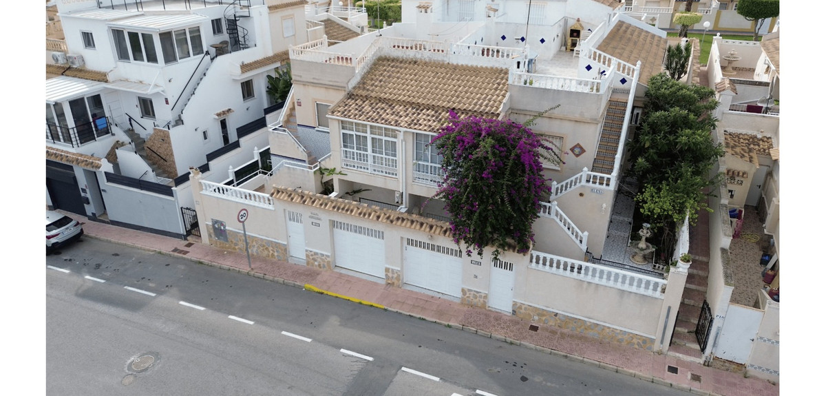 Discover this charming townhouse located in the popular residential area of Los Altos, just a short drive from the beaches of Punta Prima and Playa Flamenca.The property offers 3 bedrooms and 2 bathrooms, a private garage, and a large rooftop solarium with a barbecue area – perfect for enjoying the Mediterranean sun.
