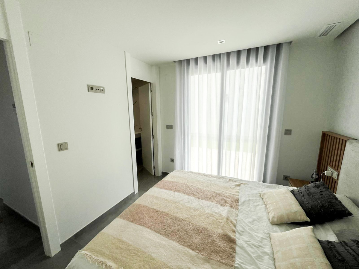 The villa has three bedrooms and three bathrooms , with high-quality finishes and built-in wardrobes in all rooms. The living area is bright and spacious, with direct access to a terrace and balcony that allow for all-day sunshine thanks to its south-facing orientation .\n