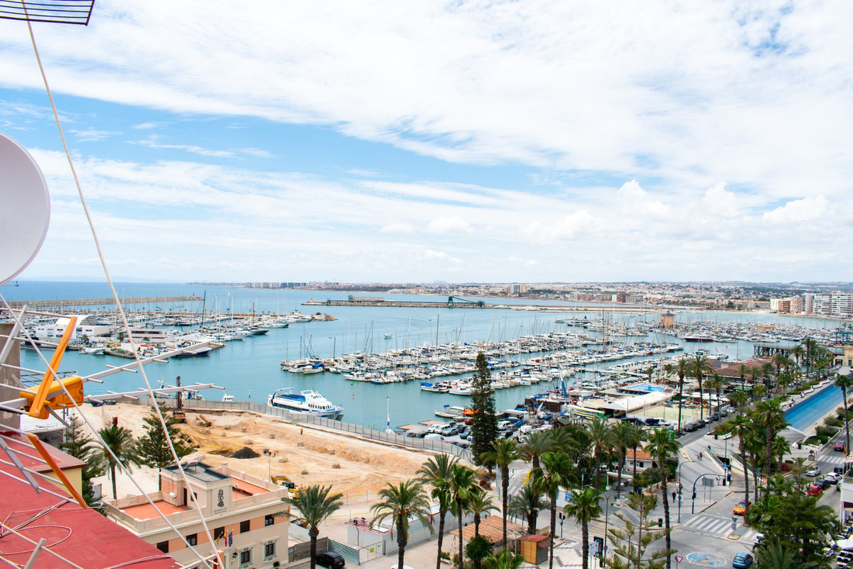 Discover this wonderful 105 m² apartment in the heart of Torrevieja , located in one of the city's most sought-after areas. Situated on the first floor , this property boasts impressive panoramic views of the sea and the port , offering a privileged setting just 100 meters from the harbor and a 4-minute walk from the beach . The property features two spacious bedrooms and two full bathrooms , including an elegant en-suite bathroom in the master bedroom. The living-dining room is spacious and bright, ideal for enjoying time with family or entertaining guests. The kitchen , equipped with top-quality materials , combines design and functionality, while air conditioning ensures maximum comfort year-round. Furthermore, the communal rooftop terrace offers an unparalleled space to relax while enjoying views of the Mediterranean . Surrounded by exclusive establishments such as El Muelle restaurant, Nicky Beach, and Bacanal , this property represents a unique opportunity for those seeking lifestyle, location, and exclusivity. Ideal as a permanent residence or investment in one of the most dynamic areas of the Costa Blanca .\n