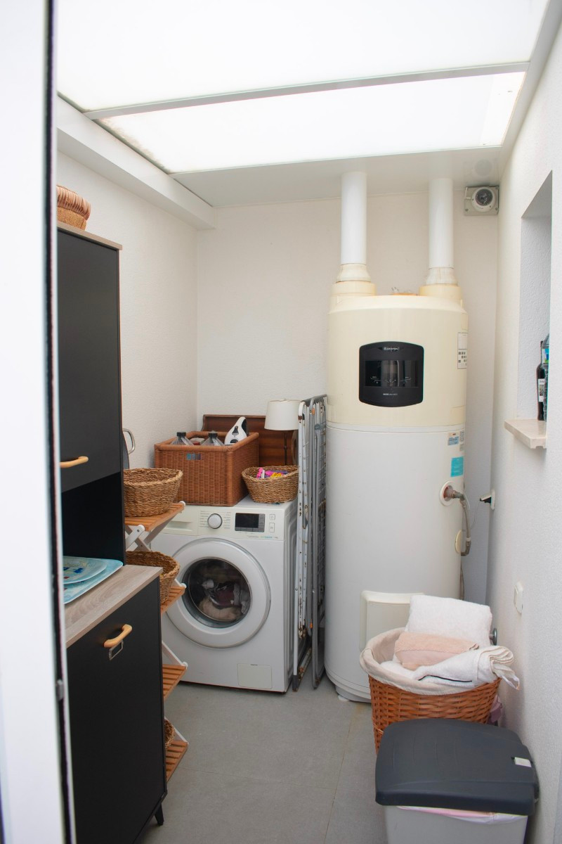 The home features built-in wardrobes , a separate laundry room , and an interior patio equipped with an outdoor shower , perfect for cooling off after a day at the beach. It is being sold fully furnished and equipped , ready to move into.\n