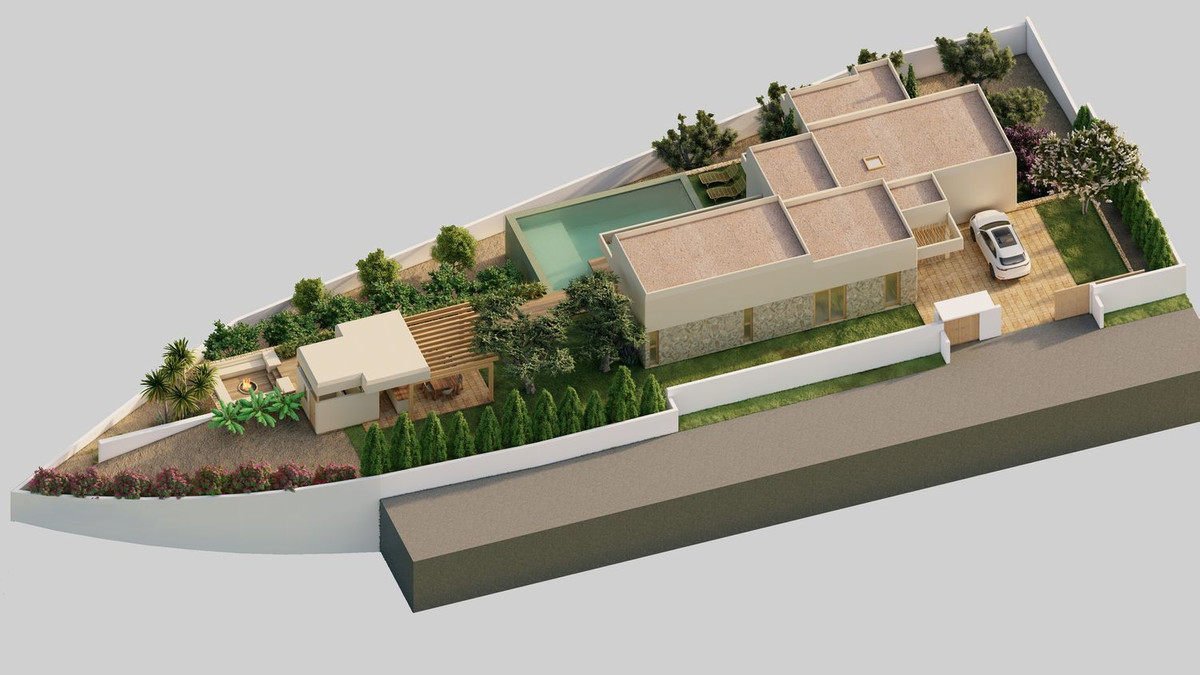 Project of a beautiful villa on a plot of 1026 m2 with three bedrooms en suite, and a guest toilet – The master bedroom is very spacious.
