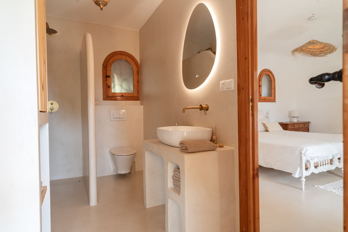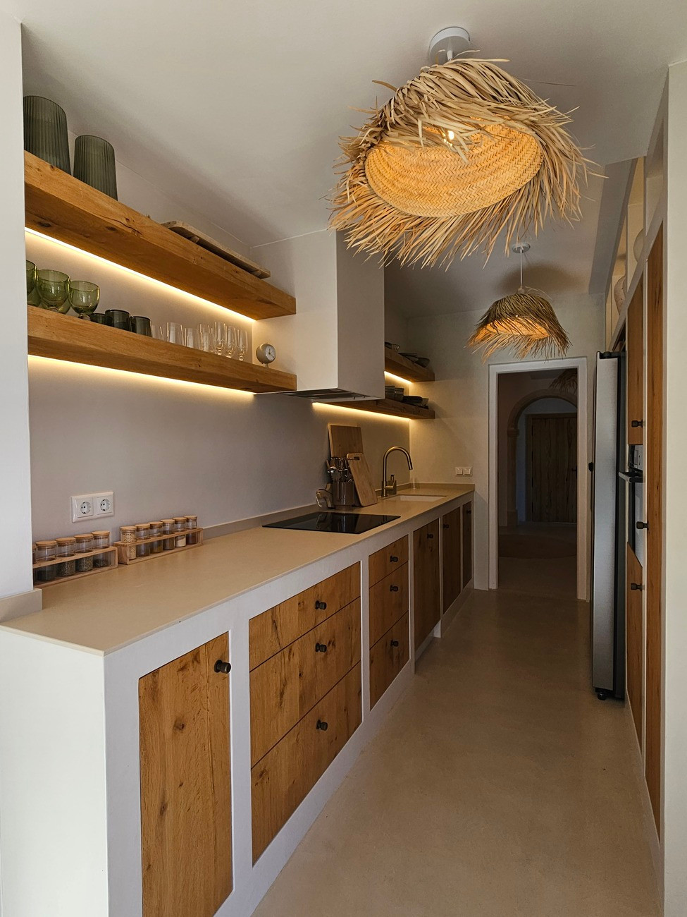 Recently refurbished from top to bottom, the home effortlessly blends classic Mediterranean character with contemporary luxury. The renovation includes new double-glazed windows and doors, sleek microcement flooring, and beautifully restored original Castellano wooden doors, maintaining charm while ensuring comfort. The Ibiza-inspired kitchen stands out with its premium appliances, minimalist finishes, and laid-back yet sophisticated atmosphere.