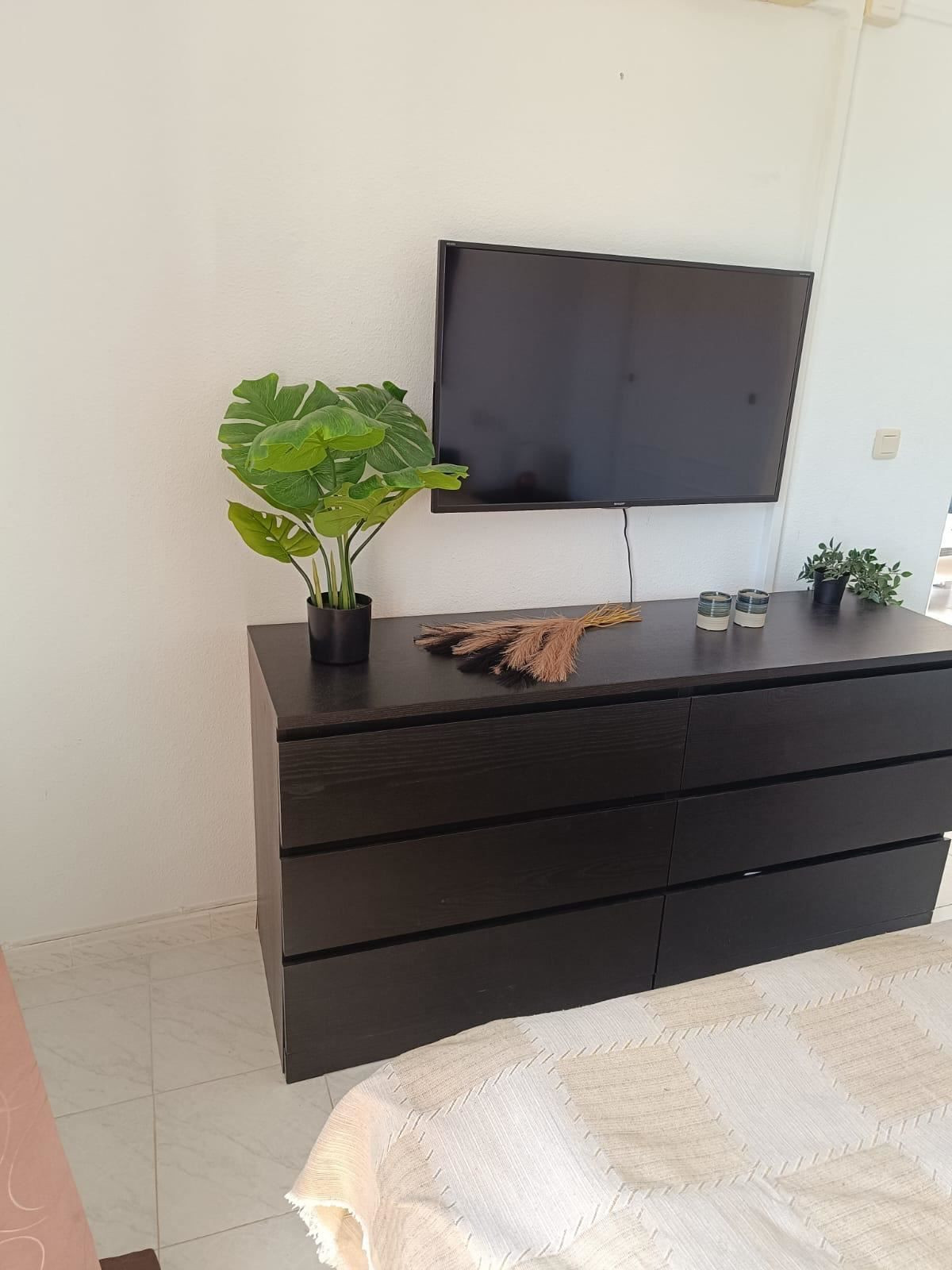 The living room is bright and inviting, with direct access to a private balcony – the perfect place for morning coffee or a book in the afternoon sun. From the living room you also reach the cozy terrace, where you can enjoy al fresco dining and the gentle Mediterranean breeze.