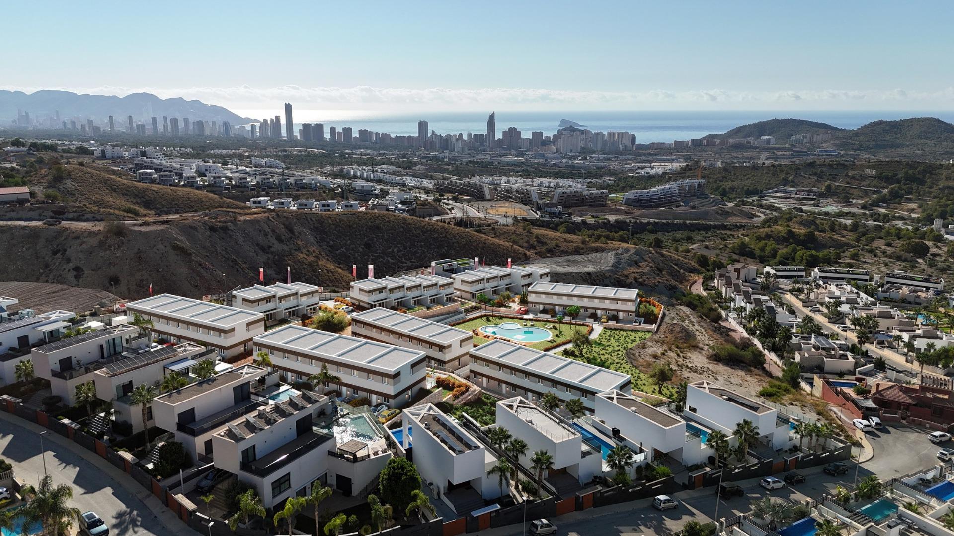Modern 3 Bedroom Townhouses for Sale in Balcon de Finestrat Costa BlancaContemporary Homes in a Prime Mediterranean LocationThis new residential development of 3 bedroom, 2 bathroom and 1 guest toilet townhouses is located in Balcon de Finestrat, a peaceful and well maintained area on the Costa Blanca. Just minutes from Benidorm and next to the Puig Campana Golf Course, this location offers an ideal balance of nature, sea and essential services. The area is known for its beautiful mountain scenery, easy access to leisure areas and a pleasant climate throughout the year.Modern Design with Bright and Functional InteriorsThe townhouses feature a modern open plan layout. The ground floor integrates a spacious kitchen, dining and living area filled with natural light, as well as a guest toilet. On the upper floor, the double bedrooms and fully equipped bathrooms provide comfort and privacy for the whole family.Some units include a 50 m2 basement with pre installation for an additional bathroom and an open space that owners can customize, with direct access to the garden.Outdoor Spaces Designed for Mediterranean LivingEach property offers generous terraces, ideal for enjoying the views of the natural surroundings and the sunny Costa Blanca weather. The community features a swimming pool, landscaped gardens and outdoor relaxation areas, creating a peaceful environment for residents.High Quality Finishes and Energy EfficiencyHomes include fully fitted bathrooms with furniture, mirror and shower screens, complete air conditioning installation, solar panels for electrical support, armored front door and Energy Certificate A. Basements come with pre installation for air conditioning splits.Excellent Connectivity and Nearby ServicesThe sandy beaches of Benidorm and Villajoyosa are just 4 km away, and the La Marina shopping center is only a short drive, offering restaurants, shops and entertainment. Nearby you will find international schools, supermarkets and all daily amenities.Distances of interest: Alicante Airport 40 km, Puig Campana Golf Course 1 km, Benidorm beaches 4 km, Villajoyosa port 9 km.A Lifestyle of Comfort and ConvenienceEach property includes one or two private outdoor parking spaces, ensuring practicality and comfort year round.Contact us today to schedule a viewing and secure your new home in Balcon de Finestrat.