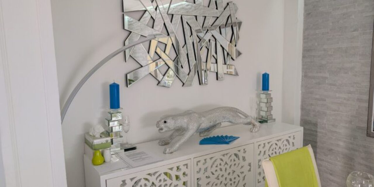 This stunning 3-bedroom villa in Villamartin offers luxury and tranquillity. It is located within a gated and secure complex. Situated in the centre of an elevated plot of 300 m² in the neighbourhood of Las Filipinas, overlooking the villas opposite and towards a wooded horizon to the Mediterranean Sea.OUTDOORLIVING The garden has a pedestrian entrance gate as well as an electric vehicle gate leading out to a carport covered by a floating pergola.A 2.4-meter-high wall topped with frosted glass panels offers ample privacy. The plot itself is a tiled area that requires no maintenance and at the front of the villa there is space to eat or play table tennis.There is also a sunny corner for sun loungers with a mature palm tree offering shade. An orange and lemon tree in two huge white ceramic pots give a true Mediterranean atmosphere upon arrival.A covered porch protects access to the front door, while to your left is a storage cupboard.Next to this, a staircase descends to the stunning swimming pool. Fourteen meters long, with a jacuzzi area and a variety of multi coloured LED lights for wonderful night effects.The pool is saltwater, with a state-of-the-art heating system for year-round swimming, an LED-lit waterfall, and a balloon at the far end.The surrounding tiled garden has space for sofas, sun loungers and parasols, as well as statues and a variety of large potted plants. Again, a wall with tall frosted glass panels provides complete privacy.This is the perfect area for a quiet swim or to party the night away to the rhythm of the twinkling lights.At the far end of the pool and to the right is a barbecue area next to a covered seating area with a table and stone benches.To the rear is a large room which stores the pool heater, pool pumps and jacuzzi and over 6 m² of additional tiles matching those used inside and outside the property in case of future breakage. LIVING SPACEThe Semi-Basement:Three sets of French sliding doors lead to adjoining areas of this air-conditioned “fun” part of the villa. To the left is a bar with leather cushions, along with table and chairs, bar stools, wine racks, a beer tap and a wine fridge.To the right is a large rectangular space where the owners currently have a full size pool table, foosball, electronic dartboard and a sofa.At the rear left there is a completely soundproofed cinema room. Buyers will have to provide their own TV and Dolby Atmos sound system, but the pull-out sofa, curtain and director’s clapperboard remain.To the rear there is a bathroom and another storage room and to the right is a large bedroom with hot/cold air conditioning.Ground floor:The front door opens into a small hallway with access to the left leading to a full bathroom with sink, vanity unit and “waterfall” walk-in shower.Straight ahead is a large open plan lounge, dining room and kitchen. The kitchen is fully equipped with integrated appliances including microwave, two ovens, fridge-freezer, dishwasher, ceramic hob and extractor hood. A black breakfast bar with granite worktop separates the kitchen from a bright and spacious L-shaped lounge.This has hot/cold air conditioning, oil-filled electric wall radiators and three sets of French doors to the outside terrace. To the rear, the lounge leads to an air-conditioned dining room.French doors from the lounge lead out to a long terrace that runs the entire length of the rear of the property overlooking the pool.The Location: Villamartin is a very popular holiday resort for especially for golfers. There are three excellent golf courses that are close to each other in the Villamartin area although Villa Martin Golf Course is by far the most established and best known of the three (the other two are Las Ramblas and Campoamor). Villa Martin is a fine championship course and is noted for hosting the 1994 Mediterranean Open. The golf course provides some stunning scenery and is of medium difficulty with excellent quality greens. The Campoamor and Las Ramblas golf courses are close by and are just a few minutes’ drive away.The renowned Villa Martin Plaza has a great selection of bars, shops and restaurants and is the ideal spot for that “special night out”. This beautiful central square has a bank, supermarket, shops, cafes and some excellent restaurants. The gardens are very picturesque, look closely and you will notice the naked lady golfer statue. Close to Villamartin are numerous un-crowded beaches with magnificent views over the sparkling blue Mediterranean and the “white sand” that are typical of the Costa Blanca. The beaches along the coastline close to Villamartin are Playa Flamenca, La Zenia, Cabo Roig, and Campoamor. All of these beaches and all the other major beaches along this part of the Mediterranean coastline are regularly awarded the European Blue Flag which is your guarantee of high standards and facilities for the whole family. Villa Martin is situated about 8 kilometres south of the bustling town of Torrevieja on the southern Costa Blanca and is just a short drive from the motorway (AP-7).