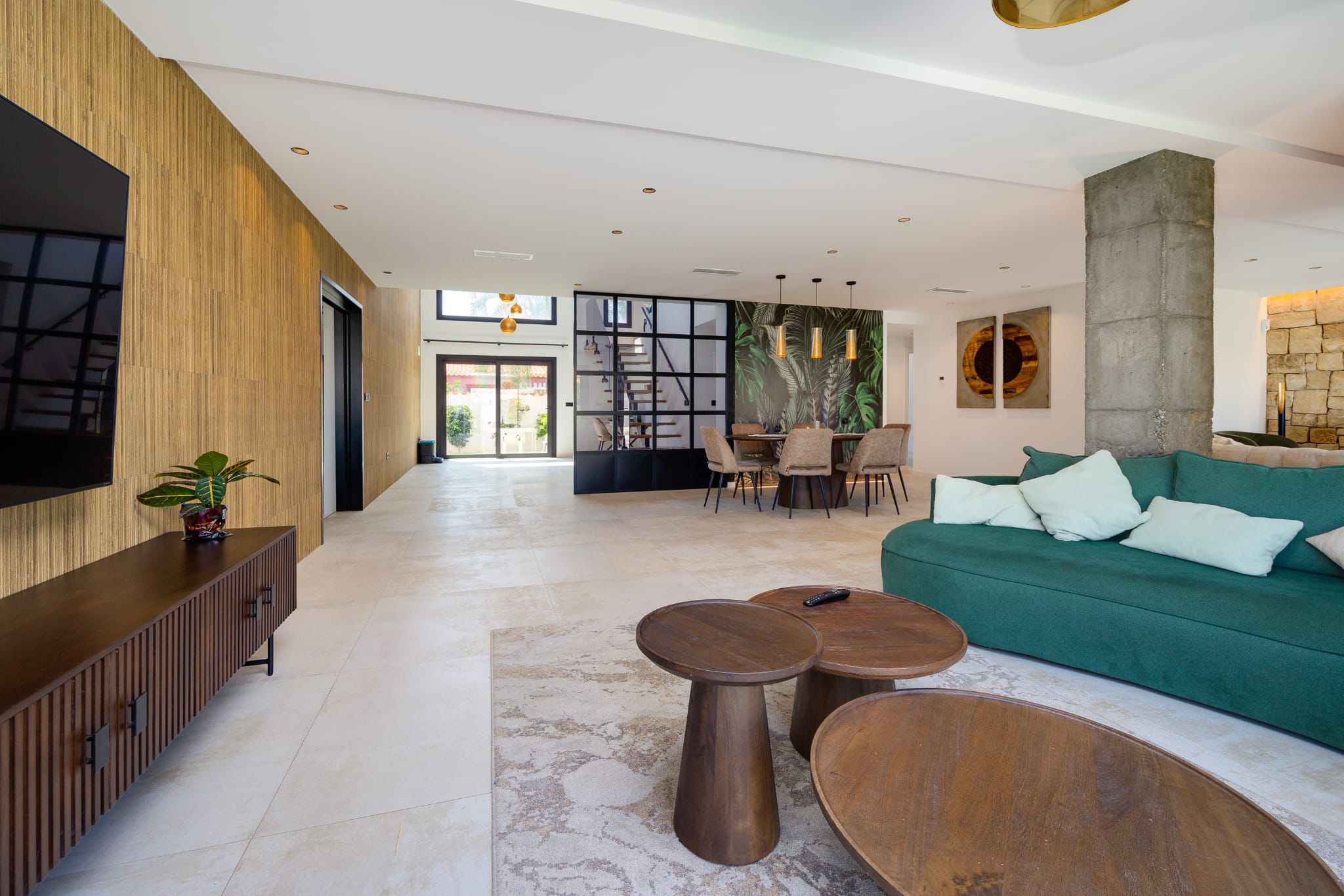 Set across two levels, the villa features soaring high ceilings and expansive windows, flooding the home with natural light and creating a remarkable sense of space and openness.