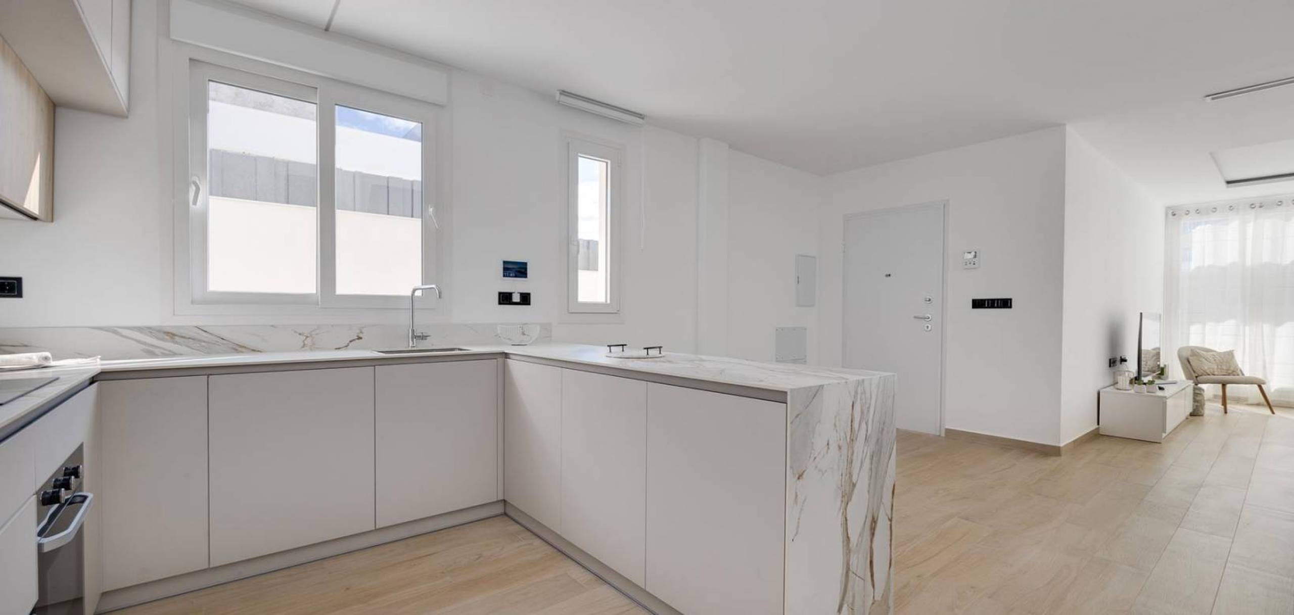 Aguas Nuevas is well positioned in relation to Torrevieja’s coastline, with beaches such as La Mata and Los Locos only a short drive away. Shopping centres including Habaneras and Zenia Boulevard are easily accessible, as are several recognised golf courses such as Villamartín, Las Ramblas and La Marquesa. Both Alicante and Murcia airports can be reached conveniently, adding to the property’s overall accessibility.