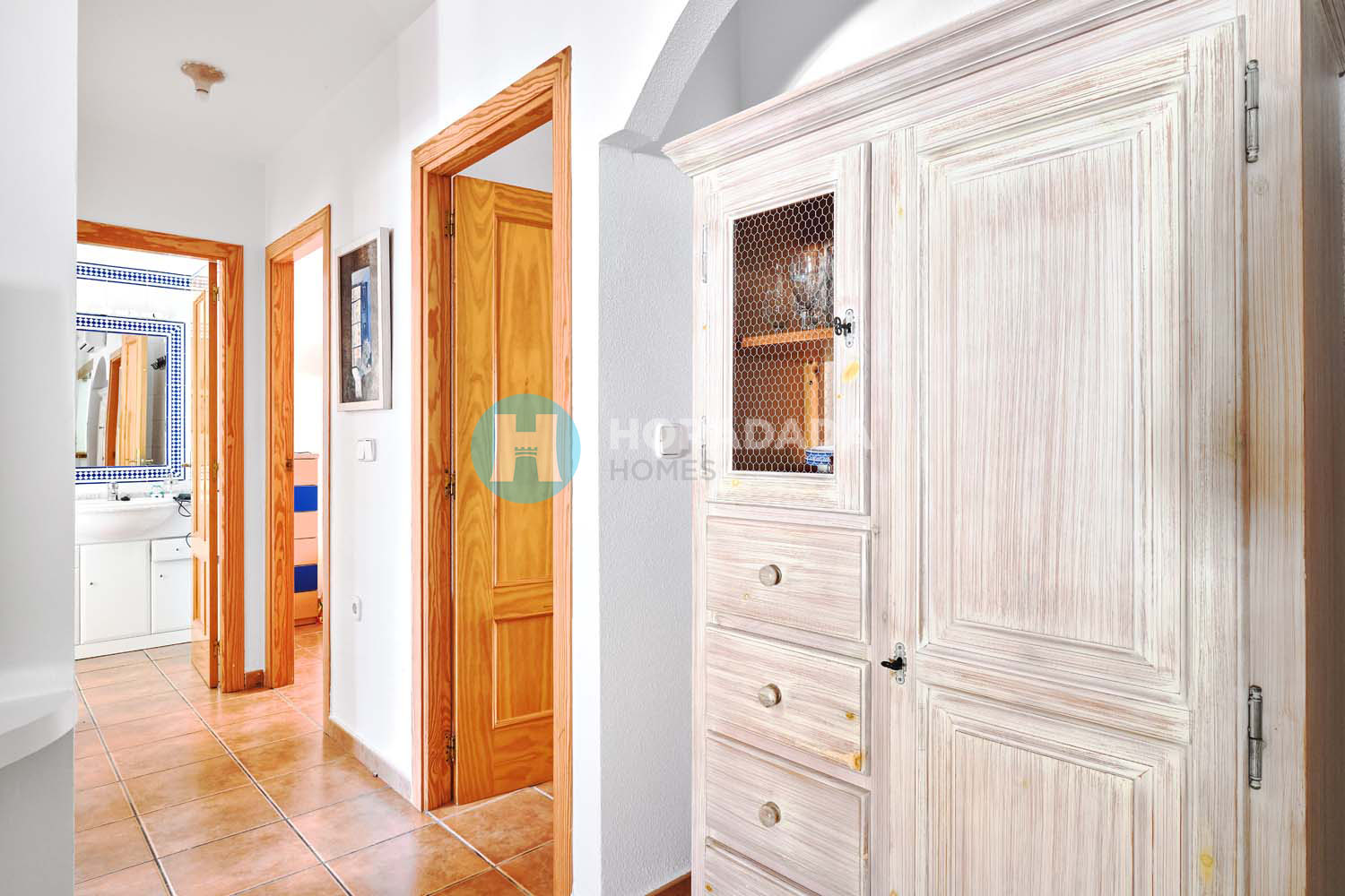 Located on a peaceful road in the sought after seaside village of Torre de la Horadada just a 7 minute walk to the beach this charming four bedroomed semi-detached villa sits on a very private ample plot. Just a short walk away from Pueblo Latino where you will find a whole host of local restaurants, cafes and bars this property has four bedrooms one of which is upstairs and has a large private sun terrace along with a bathroom. Downstairs you will find a spacious open-plan living/dining space with a built in real working fireplace, three double bedrooms and a family-size bathroom, a well equipped galley kitchen with access to the back of the property. At the back of the property is an incredible South facing patio with a summer kitchen and exterior bathroom with shower, perfect for washing off those sandy toes after a hard day at the beach! External stairs from the patio take you to the first-floor.This fantastic villa offers plenty of space for the whole family to enjoy, the generous plot has plenty of space to house its very own private swimming pool if its next lucky owners should require one. Mature trees offer both greenery and shade and private off street parking is also a great bonus to this well maintained villa. No community fees.Don’t miss this fantastic opportunity to create your dream home on the beach! Book your viewing with one of our agents today!