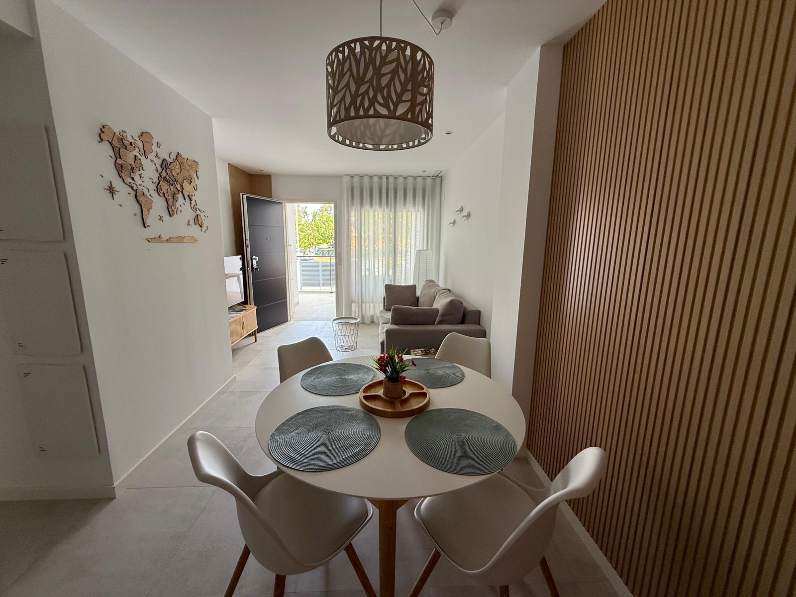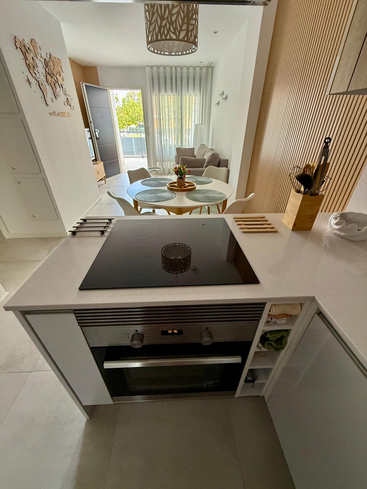 Spacious Ground floor two bedroom apartment in Higuericas Bay in El MojónLocated in the sought after coastal development of Higuericas Bay in El Mojón, this beautifully presented ground-floor three-bedroom apartment offers contemporary Mediterranean living just moments from the beach.The property features a bright and spacious open-plan living and dining area, seamlessly connected to a modern, fully equipped kitchen. Large sliding glass doors open onto a generous private terrace and garden area, creating a perfect space for outdoor dining, relaxation, and entertaining.The apartment comprises two well proportioned bedrooms, including a master suite with fitted wardrobes and a stylish en-suite bathroom. The additional bedroom is perfect for family, guests, or home office use and are complemented by a modern family bathroom finished to an very high standard indeed.Designed with comfort and quality in mind, the apartment benefits from premium finishes, air-conditioning, double glazing, and contemporary flooring throughout. The ground-floor layout provides easy access and a strong connection between indoor and outdoor living.Residents of Higuericas Bay enjoy access to beautifully maintained communal areas, including swimming pools, landscaped gardens, and secure parking. The development is ideally situated within walking distance of Higuericas Beach, local amenities, restaurants, and scenic coastal paths.This exceptional apartment is perfect as a permanent residence, holiday home, or investment opportunity, offering style, space, and an enviable location on the Costa Blanca.