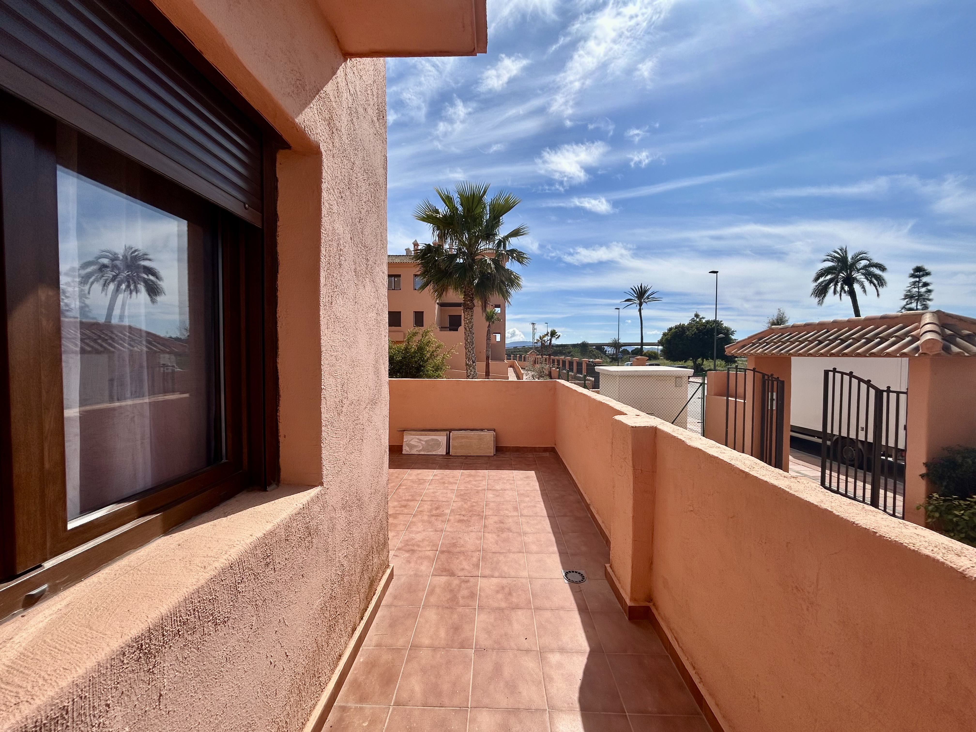 The property boasts a large private terrace with golf and sea views, an ideal space for outdoor dining, entertaining, or simply enjoying the Mediterranean sunshine.