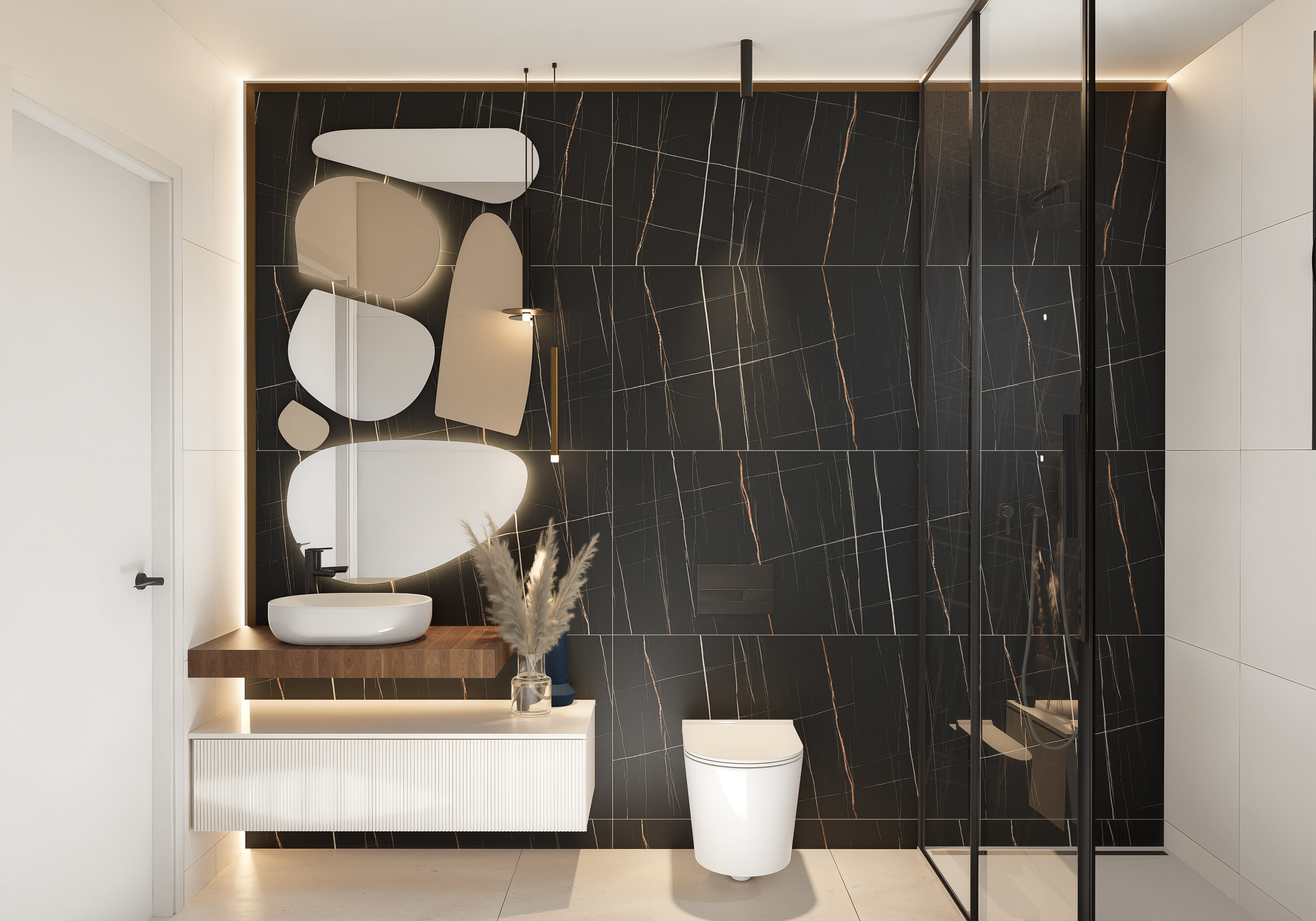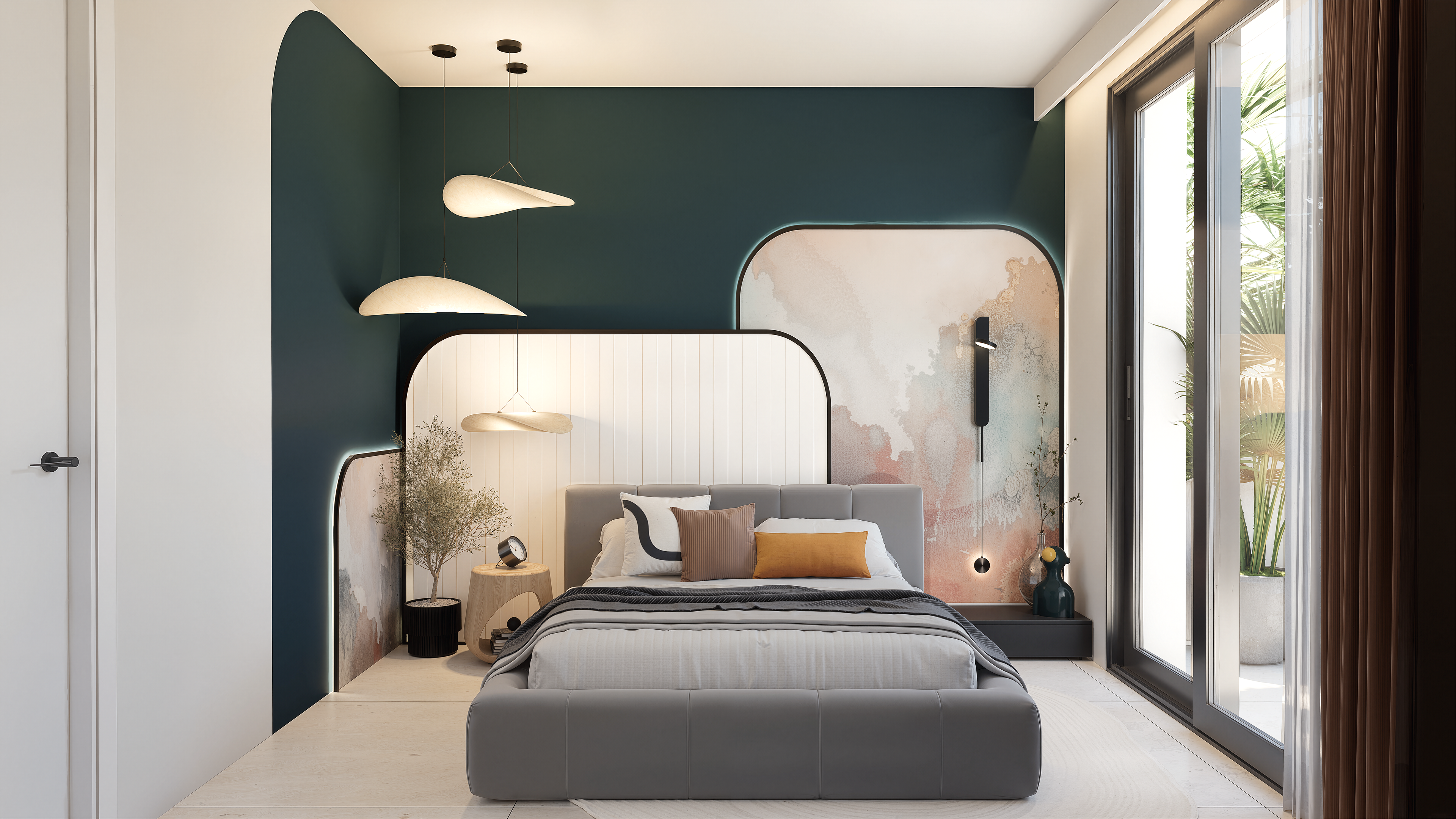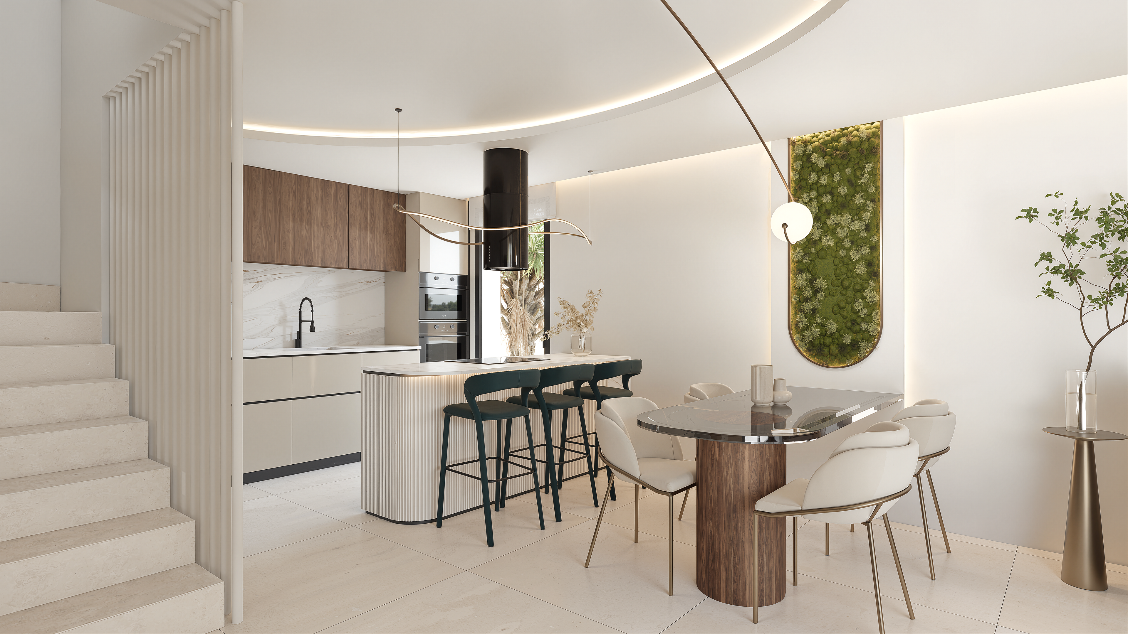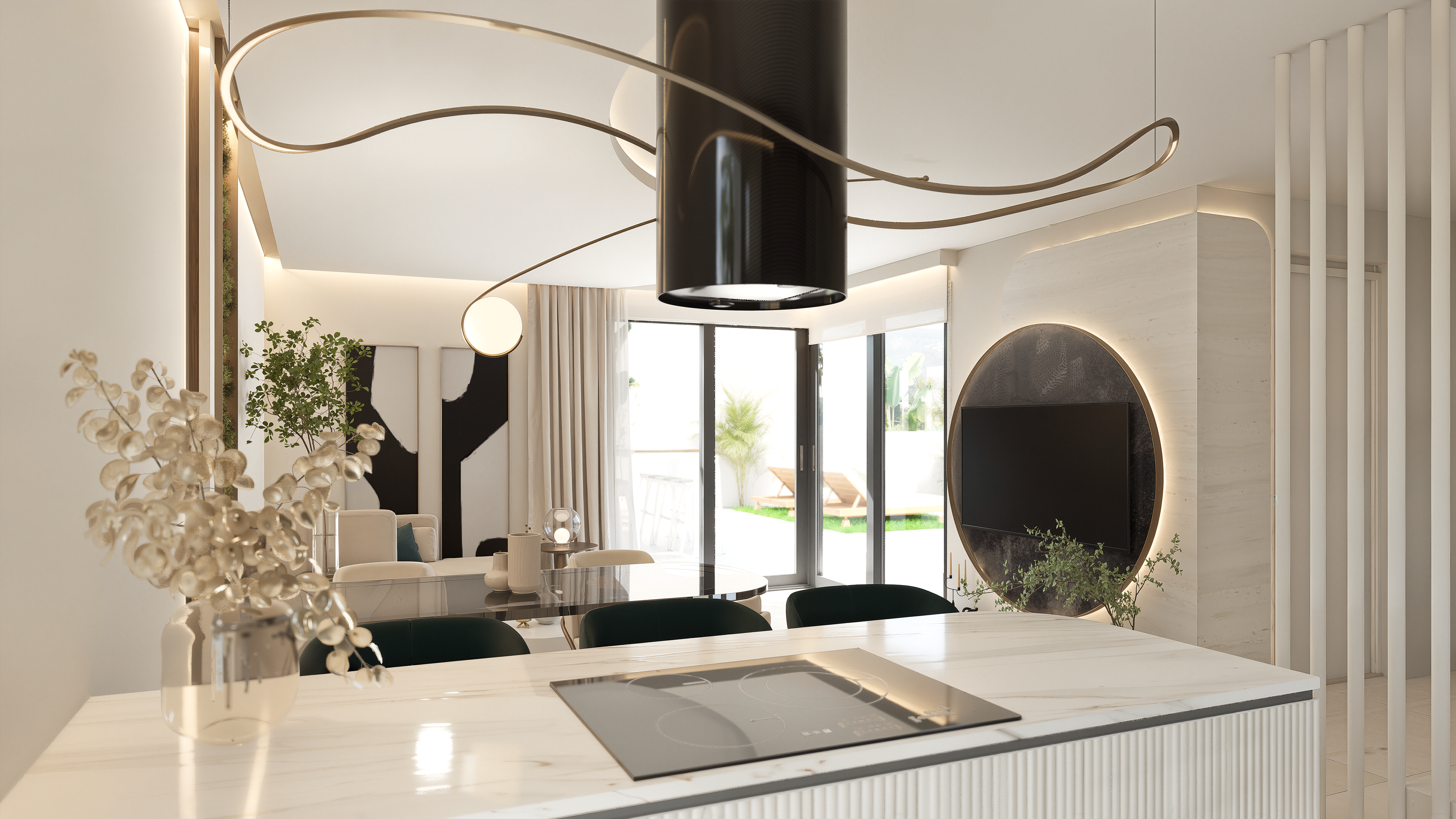 The villa is thoughtfully designed over two floors. The ground floor features a bright and spacious open-plan living and dining area with a modern kitchen, creating a perfect space for everyday living and entertaining. Large sliding doors open directly onto the outdoor terrace and private swimming pool, allowing you to enjoy indoor-outdoor living all year round. This floor also includes one bedroom and a full bathroom, ideal for guests or convenient ground-floor living.