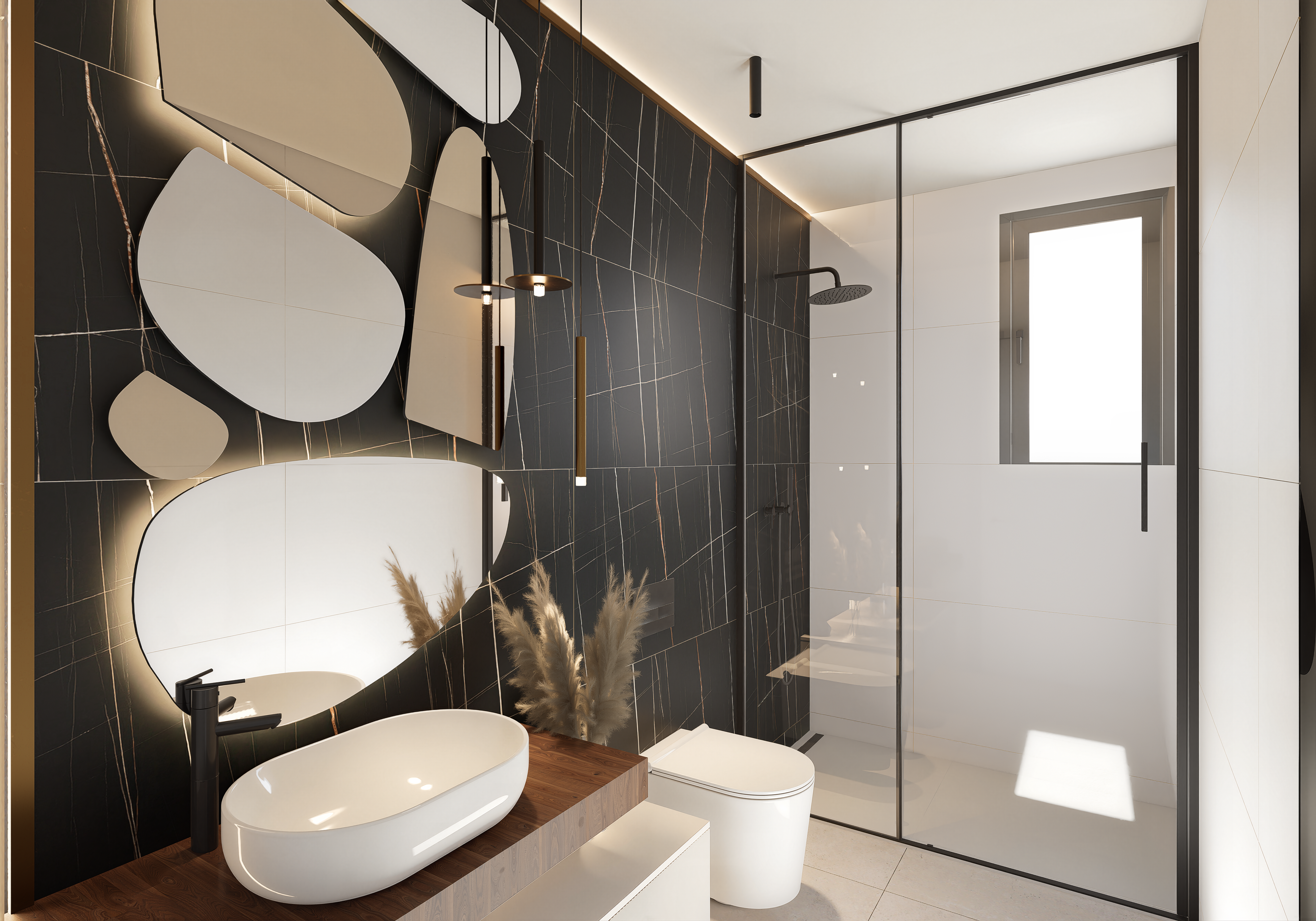 On the second floor, you will find two additional spacious bedrooms and two bathrooms, along with access to private terraces where you can relax and enjoy the beautiful surroundings and sunshine.