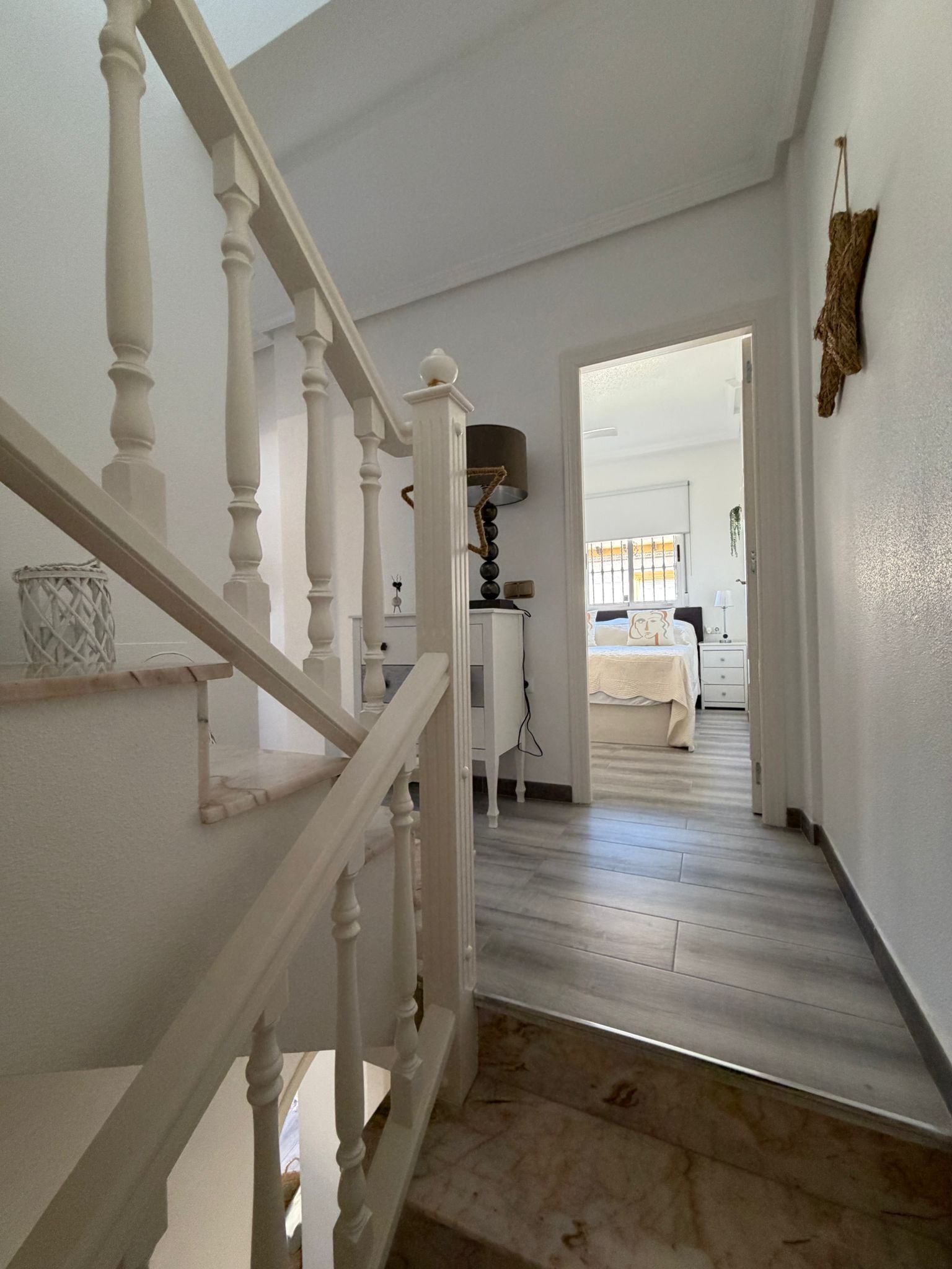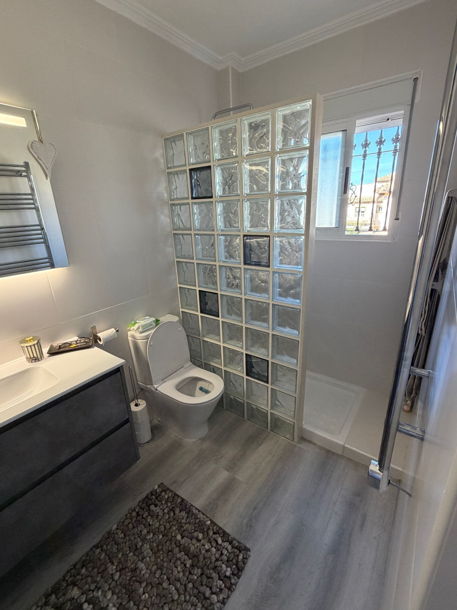This beautifully presented three-bedroom, two-bathroom San Jose villa is ideally situated in the highly sought-after area of La Zenia, offering the perfect blend of comfort, style, and Mediterranean living.The property boasts a bright and spacious open-plan living and dining area, complemented by large windows that flood the space with natural light. A fully fitted modern kitchen provides ample storage and workspace, making it ideal for both everyday living and entertaining.There are three well-proportioned bedrooms, including a generous master bedroom, along with two contemporary bathrooms finished to an very high standard indeed. The villa is designed for comfort year-round, with quality fixtures and fittings throughout.Outside, the property features a private garden with plenty of space for relaxing or dining al fresco, as well as access to a communal swimming pool. A private terrace offers the perfect spot to enjoy the warm Spanish climate.Situated just a short distance from local amenities, beautiful beaches, and popular shopping and dining areas, this villa is ideal as a permanent residence, holiday home, or investment opportunity.This villa has been completly refurbished to an very high standard indeed using only the highest quality materials. A storage shed is also included.Viewing is highly recommended to fully appreciate all that this charming villa has to offer.