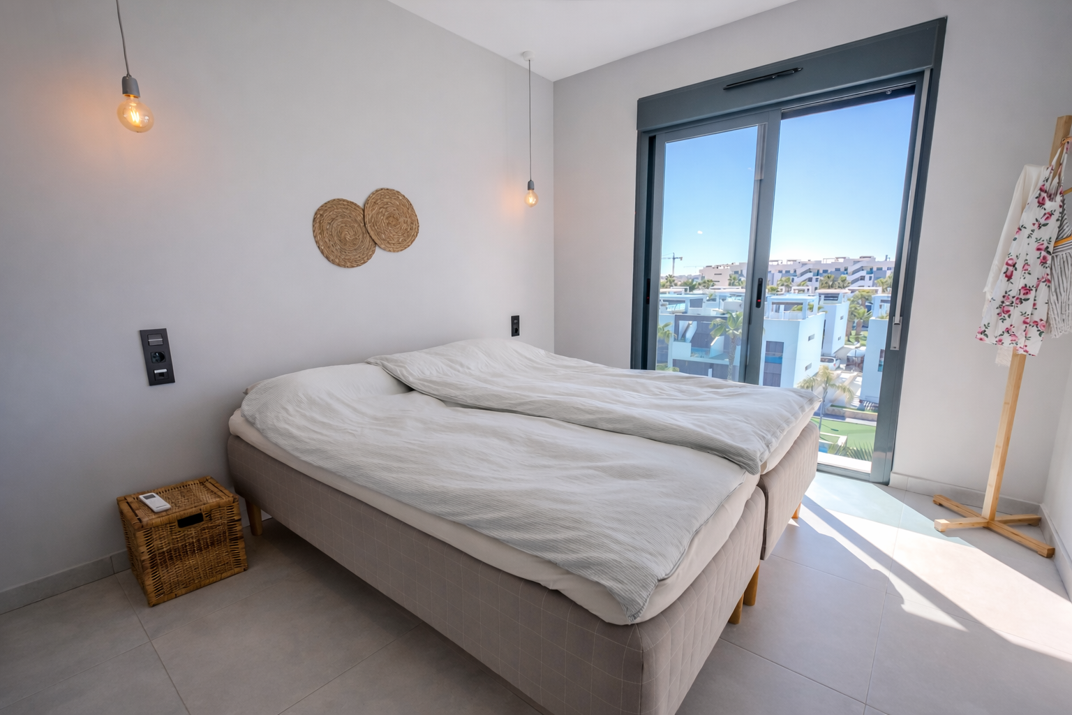 This modern property offers a spacious and light-filled living area, with large sliding doors leading out to a private balcony—perfect for relaxing or entertaining. From here, an external staircase provides access to a generous private solarium, where you can enjoy breathtaking open views over the nearby lake and surrounding natural landscape.